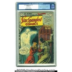 Star Spangled Comics #122 (DC, 1951) CGC VF/NM 9.0 Off-white to white pages. This is the nicest copy yet graded by CGC. This issue features the origin and first appearance of the Ghost-Breaker. The DC comics from the 1950s are truly scarce in high grade, and rarely surface again once they've been placed into a personal collection. Overstreet 2002 NM 9.4 value = $425. Important notice: We expect to be auctioning lots at the rate of 200-250 per hour. Sometimes eBay Premier live bid software cannot keep up with that pace, so we strongly recommend that you place a realistic proxy bid now as insurance to avoid disappointment. Also please note that all Heritage/CAA lots purchased through eBay Premier carry a 20% Buyer's Premium. Please make sure you read the Terms and Conditions.
