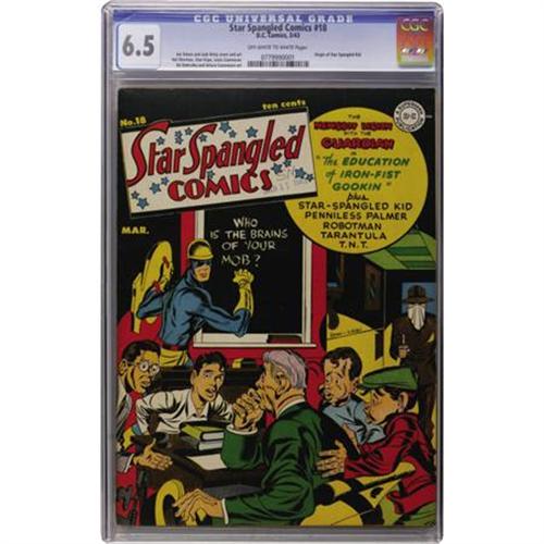 <B>Star Spangled Comics #18 (DC, 1943) CGC FN+ 6.5 Off-white to white pages.</B></I> Simon and Kirby's Newsboy Legion heads the cast of characters here, with the Star-Spangled Kid and TNT also appearing. Overstreet 2007 FN 6.0 value = $462; VF 8.0 value = $963. CGC census 6/07: 1 in 6.5, 3 higher.<BR><BR><b>Shipping:</b> Comics - Slabbed (certified) (<a target="_blank" href="http://www.heritageauctions.com/common/shipping.php">view shipping information</a>)