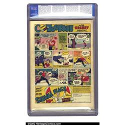 Star Spangled Comics #29 (DC, 1944) CGC VF+ 8.5 White pages. The Newsboy Legion are jumping on the bandwagon of the superhero publishing craze on the cover to this Golden Age classic. This entire book has an extremely bright and colorful appearance, with basically no wear at all. This issue is the first appearance of Robbie the Robotdog and artwork by Jack Kirby and Joe Simon. Overstreet 2002 VF 8.0 value = $656. Important notice: We expect to be auctioning lots at the rate of 200-250 per hour. Sometimes eBay Premier live bid software cannot keep up with that pace, so we strongly recommend that you place a realistic proxy bid now as insurance to avoid disappointment. Also please note that all Heritage/CAA lots purchased through eBay Premier carry a 20% Buyer's Premium. Please make sure you read the Terms and Conditions.