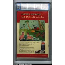 Star Spangled Comics #40 Crowley pedigree (DC, 1945). Known for Simon and Kirby's Newsboy Legion, a stint by Batman and Robin, and the first appearance of Tomahawk, this DC anthology has something for everyone. A beautiful book showing only two minor color breaks on the spine, this is an outstanding example from the Crowley collection. CGC NM- 9.2 Off-white pages. Overstreet 2001 NM 9.4 value = $550.  Important notice: We expect to be auctioning lots at the rate of 200-250 per hour. Sometimes eBay Premier live bid software cannot keep up with that pace, so we strongly recommend that you place a realistic proxy bid now as insurance to avoid disappointment. Also please note that all Heritage/CAA lots purchased through eBay Premier carry a 20% Buyer's Premium.
