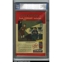 Star Spangled Comics #50 (DC, 1945) CGC NM 9.4 Off-white pages. If high-grade is your thing, then you must take a gander at this one. Simon and Kirby's cover looks to have been teleported across more than half a century unscathed by time. The Newsboy Legion and the Guardian beckon. How can you to resist? According to CGC's census, this is the best grade they have given this particular issue. Overstreet 2002 NM 9.4 value = $575. Important notice: We expect to be auctioning lots at the rate of 200-250 per hour. Sometimes eBay Premier live bid software cannot keep up with that pace, so we strongly recommend that you place a realistic proxy bid now as insurance to avoid disappointment. Also please note that all Heritage/CAA lots purchased through eBay Premier carry a 20% Buyer's Premium.