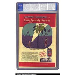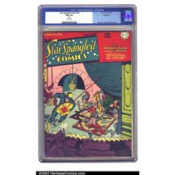 Star Spangled Comics #52 Big Apple pedigree (DC, 1946) CGC NM 9.4 White pages. Simon & Kirby covers graced all but six of the first 55 issues, ensuring lasting interest in this title. No other copy of this issue comes within a grade of this Near Mint assigned by CGC. CGC does note about the cover, "Mis-cut." Overstreet 2002 NM 9.4 value = $525. Important notice: We expect to be auctioning lots at the rate of 200-250 per hour. Sometimes eBay Premier live bid software cannot keep up with that pace, so we strongly recommend that you place a realistic proxy bid now as insurance to avoid disappointment. Also please note that all Heritage/CAA lots purchased through eBay Premier carry a 20% Buyer's Premium. Please make sure you read the Terms and Conditions.
