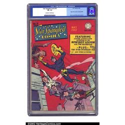 Star Spangled Comics #8 (DC, 1942) CGC FN- 5.5 Off-white to white pages. Colors on this copy rank with those of a much higher grade, making this a very nice book for the grade. Overstreet 2002 FN 6.0 value = $708. Important notice: We expect to be auctioning lots at the rate of 200-250 per hour. Sometimes eBay Premier live bid software cannot keep up with that pace, so we strongly recommend that you place a realistic proxy bid now as insurance to avoid disappointment. Also please note that all Heritage/CAA lots purchased through eBay Premier carry a 20% Buyer's Premium. Please make sure you read the Terms and Conditions.