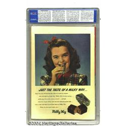 <B>Star Spangled Comics #81 Mile High pedigree (DC, 1948) CGC VF/NM 9.0 Off-white pages.</B></I> This issue's Star Spangled Kid story featured the first appearance of Merry Pemberton. As "Merry, Girl of 1000 Gimmicks" she would soon eclipse the Kid (her adoptive brother) in popularity! She's now known to a new generation, having reappeared in comics in the 1990s. Win Mortimer drew her first appearance (as well as the cover), while Jim Mooney drew Robin's solo story. This superb-looking pedigree book is one of only two copies that CGC has certified to date, and the only one graded above FN/VF. Overstreet 2004 VF/NM 9.0 value = $525; NM- 9.2 value = $700. <BR><BR><B>Important notice:</B> Heritage usually auctions material at the rate of 200-250 lots per hour. On some occasions eBay Live bid software or the Internet may not be able to keep up with the pace of the auction. We recommend placing a realistic absentee bid now as insurance to avoid disappointment. Occasionally the auctioneer may eliminate or reject an eBay Live bid, and the auctioneer may also reopen a lot after the close of the eBay live bidding (usually because we missed an audience bid), and may reject your bid even if it shows you as the winning bidder. By bidding via eBay Live, you agree that Heritage may award the lot to another bidder at its sole discretion under the circumstances described above or any other reasonable circumstances. Since eBay bids are not shown to us until we open the lot on the floor, we treat those bids just like floor bids. In most cases the floor responds before the eBay bid is presented to us, due to Internet lag time, so for consistency we have made it a policy that floor bids are always considered first over tie eBay live bids. Also please note that all Heritage lots purchased through eBay Live carry a 20% Buyer's Premium. Please make sure you read the Terms and Conditions before you bid.