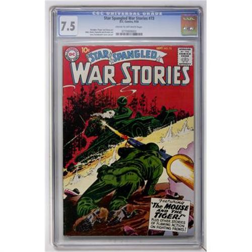 <B>Star Spangled War Stories #73 (DC, 1958) CGC VF- 7.5 Cream to off-white pages.</B></I> Jack Abel, Ross Andru, Mike Esposito, and Mort Drucker art. Jerry Grandenetti cover and art. Overstreet 2007 VF 8.0 value = $67. CGC census 6/07: 1 in 7.5, none higher. <I>From the Keith Marlow Collection.</B></I><BR><BR><b>Shipping:</b> Comics - Slabbed (certified) (<a target="_blank" href="http://www.heritageauctions.com/common/shipping.php">view shipping information</a>)