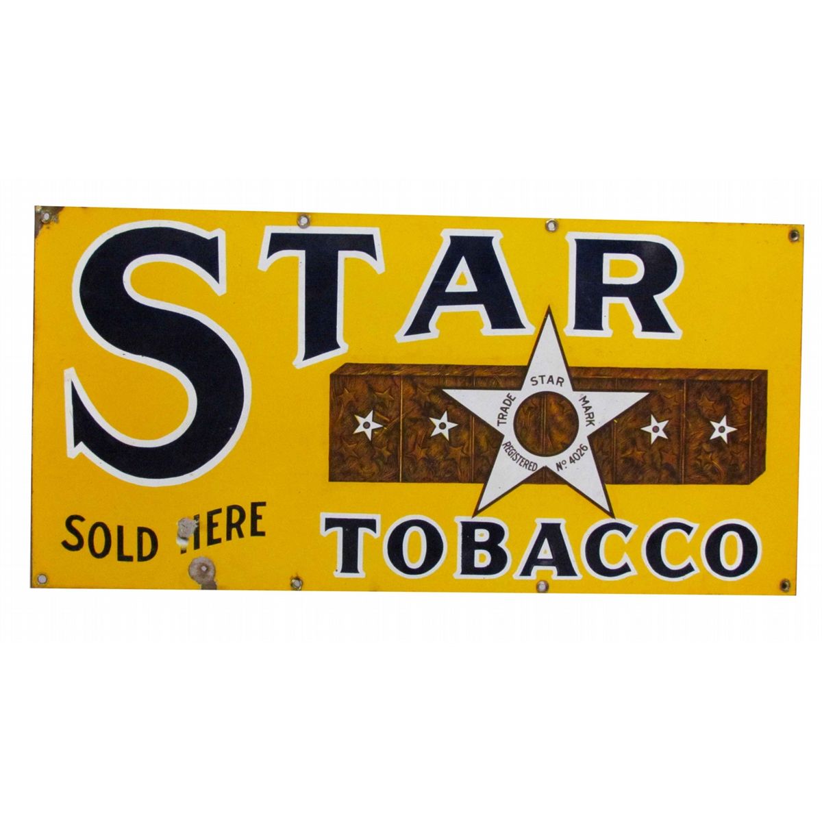 Star Tobacco Heavy Porcelain Sign. Paint loss mostly at grommets otherwise very good condition. 24 X 12 inches.