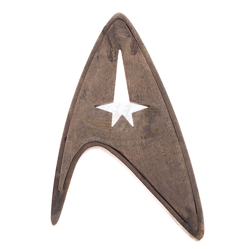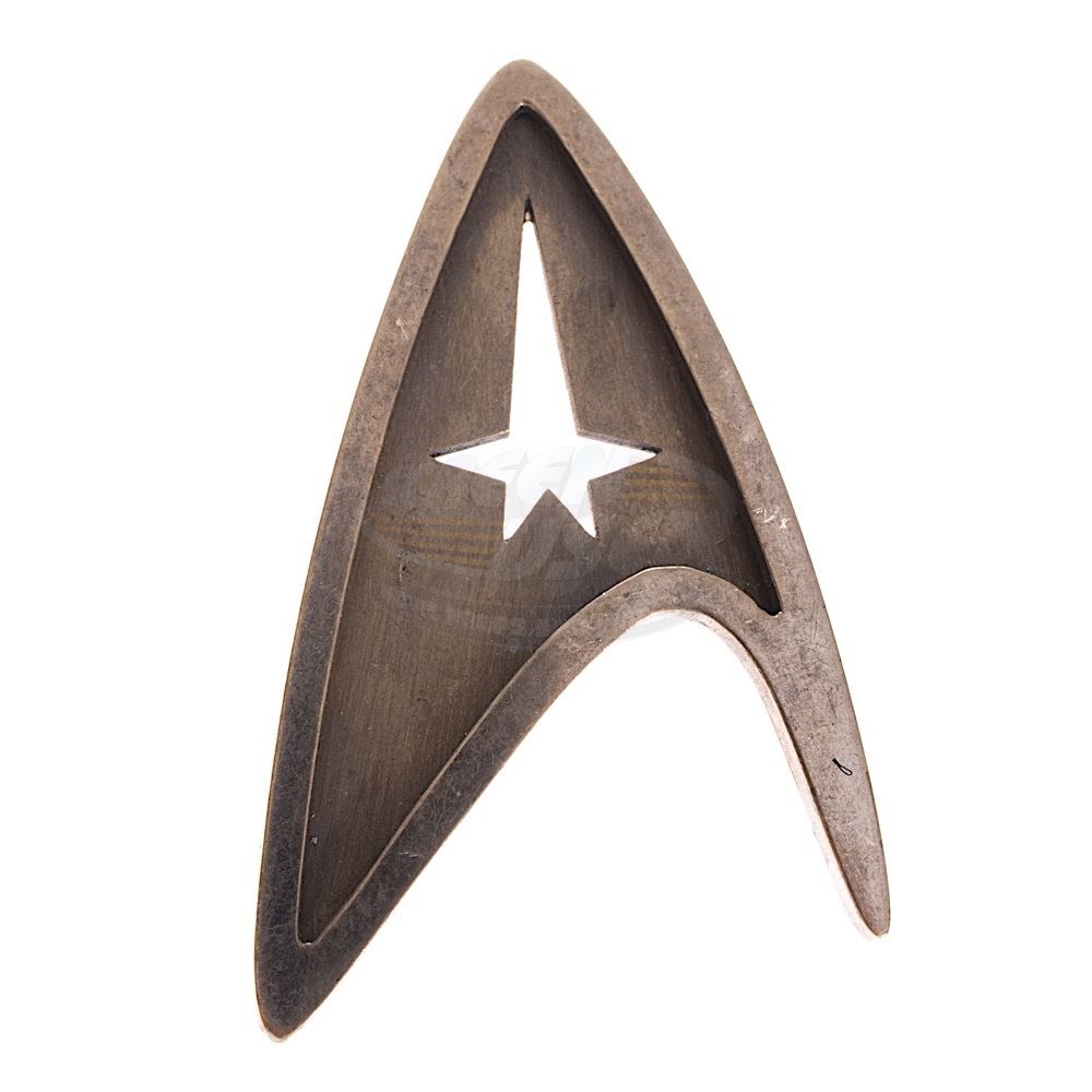 (Paramount Pictures, 2016) This Starfleet uniform chest insignia was custom-made for use by various actors during filming. The iconic insignia is made of a two piece metal design and measures 2" x 1.25". Two sided tape was applied to the backside for attaching to the costume during filming.