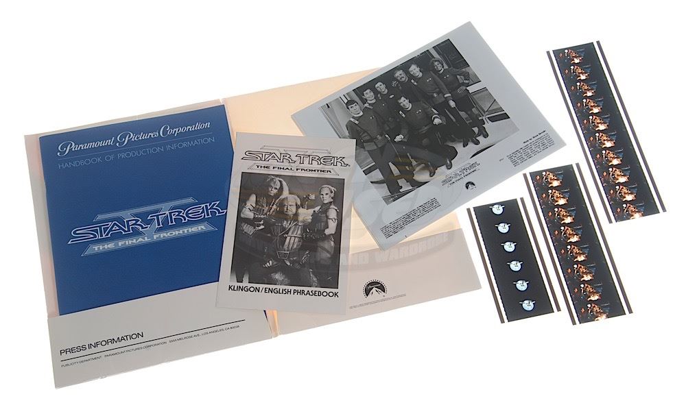 - Star Trek V: The Final Frontier, with one production booklet, 14 stills, a Klingon to English phrasebook and three sections of cut film strips