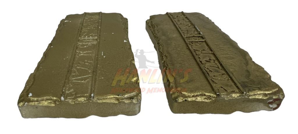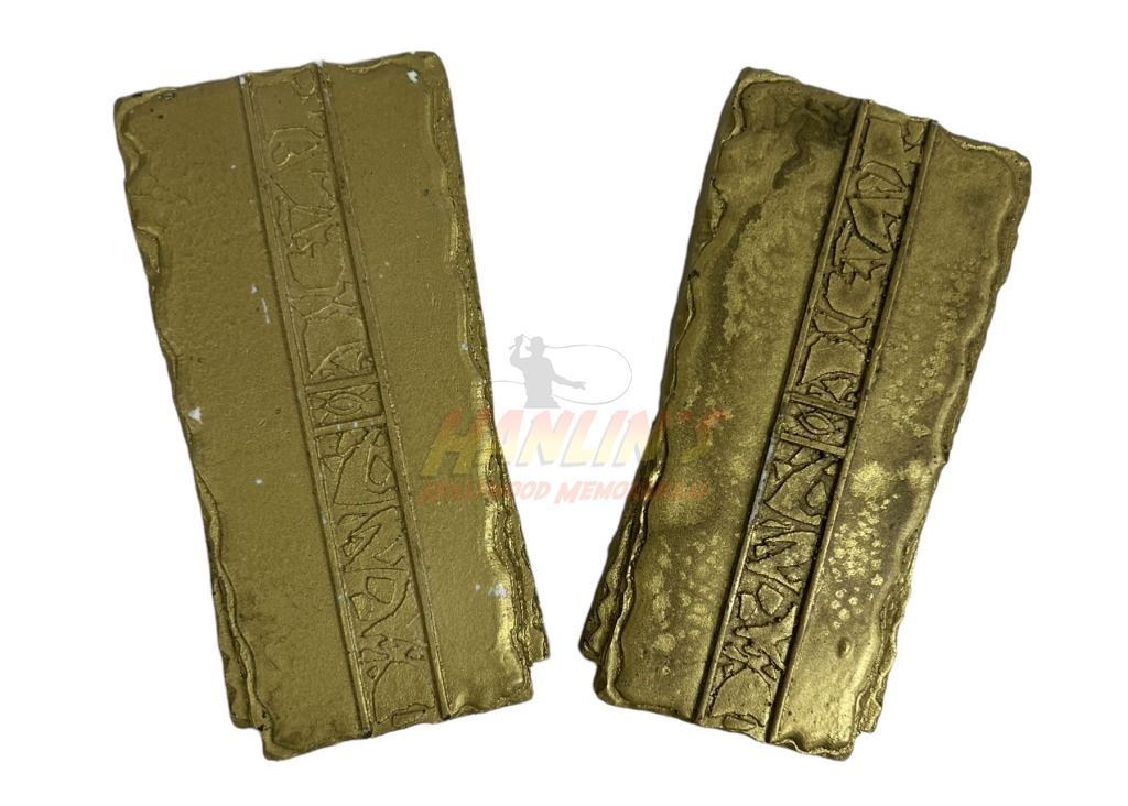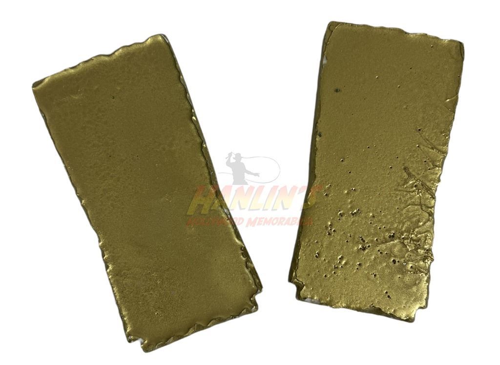 Original set of 2 Gold-Pressed Latinum pieces used on the science fiction television series 'Star Trek: Deep Space Nine' (1993 - 1999), where in the vicinity of the liberated planet of Bajor, the Federation space station Deep Space Nine guards the opening of a stable wormhole to the far side of the galaxy.