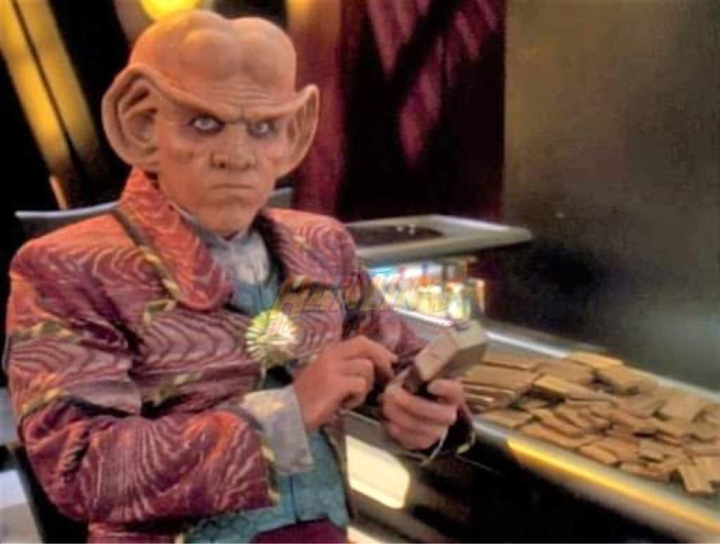 As an interesting easter egg the Ferengi letters on the different styles of Latinum are supposed to be names of the film crew members including Dana Ginsberg, "Bear" Burge, Michael Moore, Shawna Hogan-Moore, Max Cervantes and Scott Brodeen.