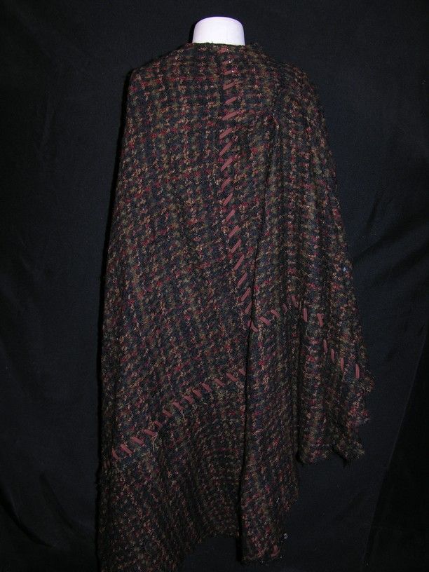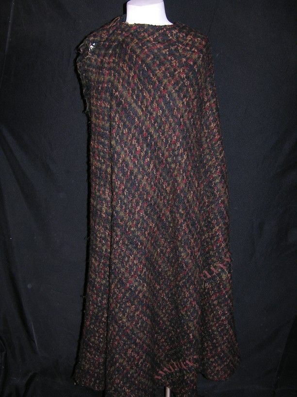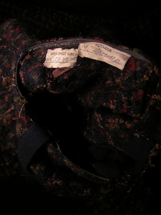 Black wrap made of heavy wool, utilized in both Star Trek: Deep Space Nine and Star Trek: Voyager. The labels of both appear on the inner collar. The one for DS9 has a handwritten "Colm", indicating its wear by series star Colm Meaney as Miles O'Brien. The label for Voyager has a handwritten "M. Hammer".