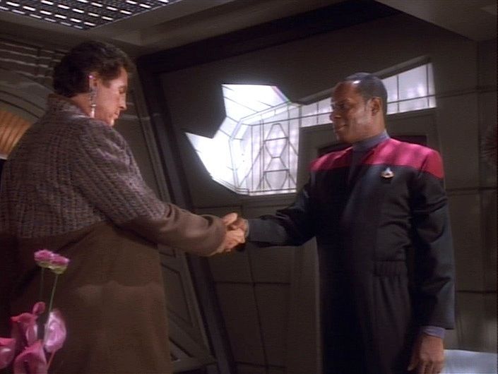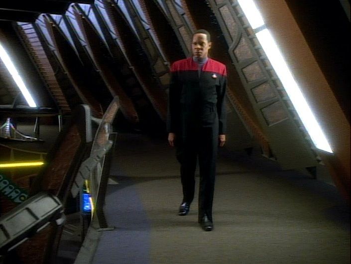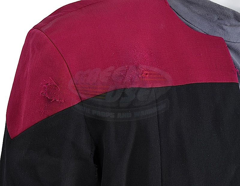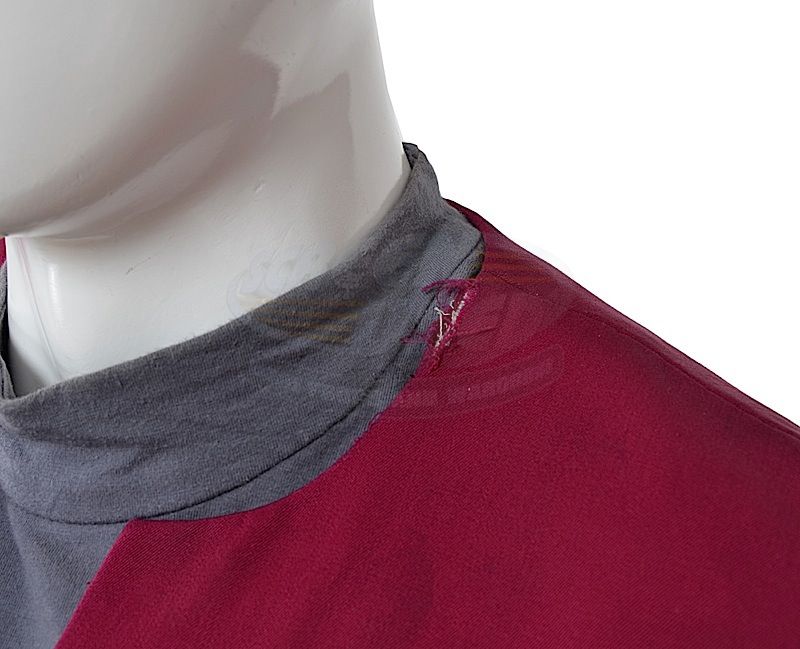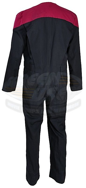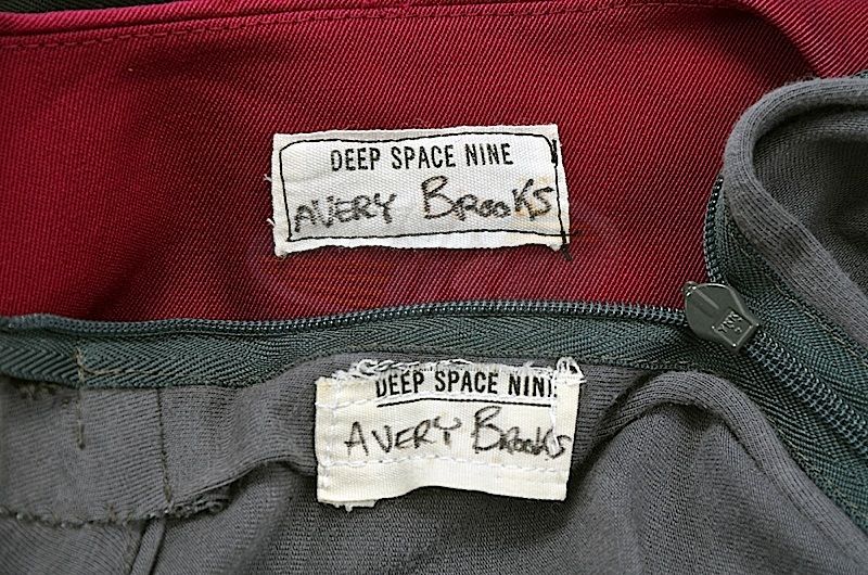 (Paramount-TV, 1993-99) This outfit was custom made by the production for use by Avery Brooks as "Benjamin Sisko" in various episodes. The outfit consists of a jumpsuit and shirt. Both the jumpsuit and shirt have DS9 costume tags attached with "Avery Brooks" written on them. The jumpsuit has some wear around the collar and a small tear on the left shoulder. A replica Comm badge is included to finish the costume.