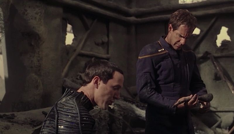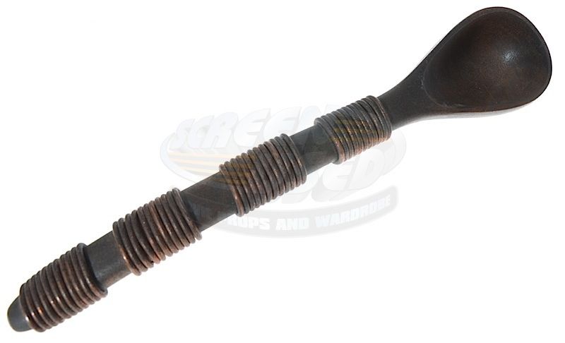 (Paramount Television, 2001-05) This large prop ladle was acquired by the production for use by Scott Bakula as "Captain Jonathan Archer" in the season two episode titled "Shockwave Part II". The ladle has four sets of metal coils attached to simulate the copper needed by Captain Archer as a component to build the device to send them back to the present from the future. The ladle measures 15" in length.