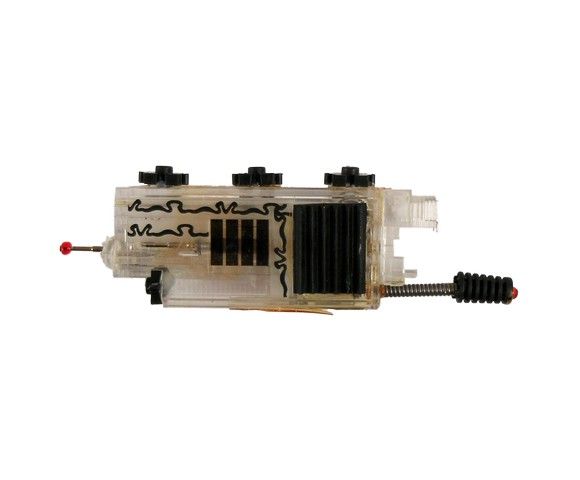 Star Trek First Contact Borg Neural Processor Prop - An unique screen used prop for Star Trek fans, or collectors of iconic movie props. This is a Borg Neural Processor made for and screen used in "Star Trek: First Contact" (1996). The Borg Neural Processor is a device implanted into all Borg Drones. It contains information received from the Collective which among other things gives the Drones their "Marching Orders". This Neural Processor appears onscreen during the scene where Captain Picard (Patrick Stewart) and Lily Sloane (Alfre Woodard) are in the Enterprise-E 1930's style "speakeasy" observation lounge. Picard uses an old fashion Tommy Machine Gun to bring down a Borg Drone, then lays him on a table and pulls out the Processor and connects it to his tricorder. Several of these processors were created by legendary "First Contact" Art Department Coordinator and Prop Maker Penny Smartt-Juday. Some were equipped with red LEDS that lit up as Picard downloaded the information, and others that were seen before the information is transferred are "static" processors (without working LEDS inside). This is one of the hero static processors, This special prop is made of clear acrylic with metal components and black plastic detail. It comes with a handwritten Letter of Provenience from Penny Smartt-Juday herself, on Paramount Pictures Official Inter-Office stationary, which she has signed with both her name and her infamous "Moneypenny" nickname. (Approx. 5x 1').