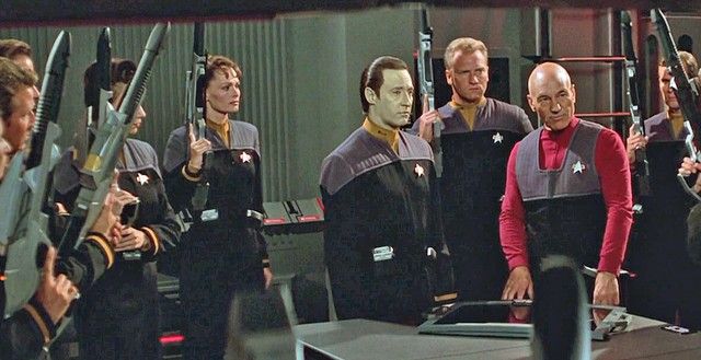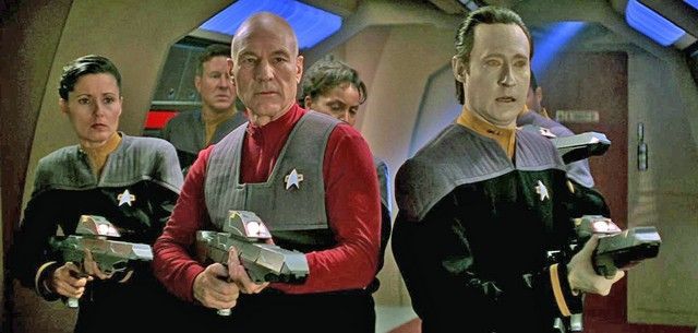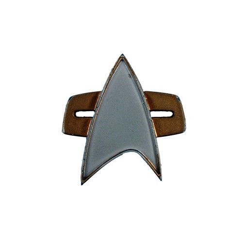 Star Trek First Contact Screen Used Communicator Badge - An authentic screen used Star Trek Communicator Badge screen used in the first TNG feature "Star Trek: First Contact" (1996), and also in several subsequence TNG features. It comes from the personal collection of the legendary Art Department Coordinator and Prop Maker Penny Smartt-Juday, well known for her work on many of the Star Trek features, including "Insurrection" and "Nemesis", as well as "Alien: Resurrection", and such classic TV series as "Deep Space Nine" and "NCIS".  The back of the Communicator still has the production costume Velcro and the number "19" written on it. It includes a hand-written Letter of Provenience from Penny Smartt-Juday herself, signed with both her name and her infamous "Moneypenny" nickname. The communicator has been removed from a small Plexiglas box for easier access. (Approx 2"x1.5").