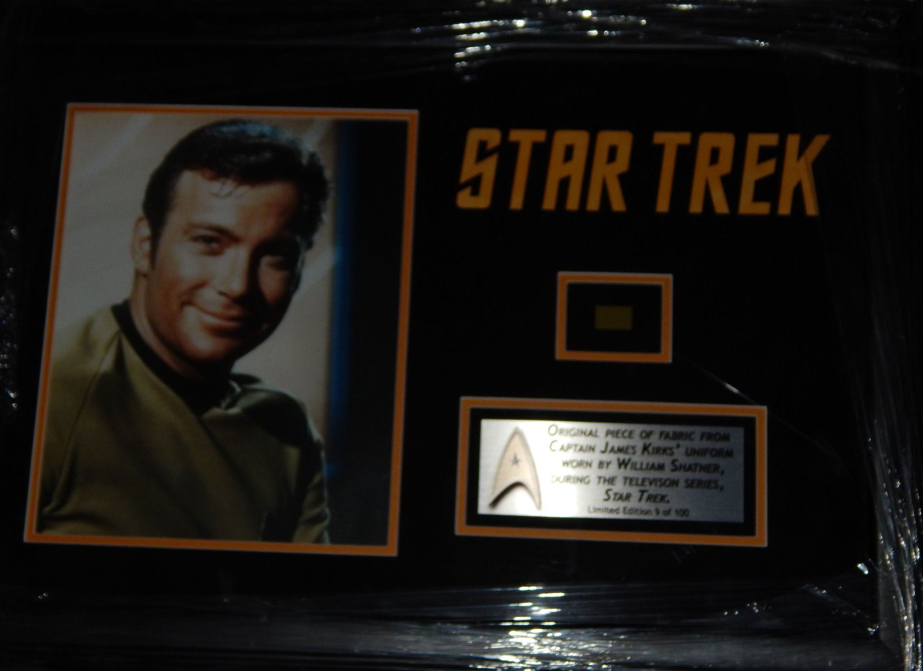 Limited edition framed original swatch of Captain Kirk's tunic from the original Star Trek television series. All items come with a certificate of authenticity good for the life of the piece.
