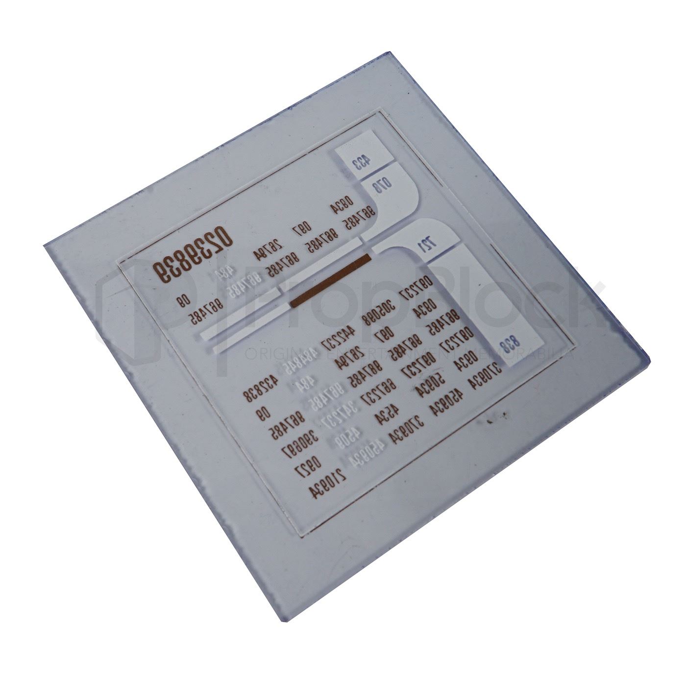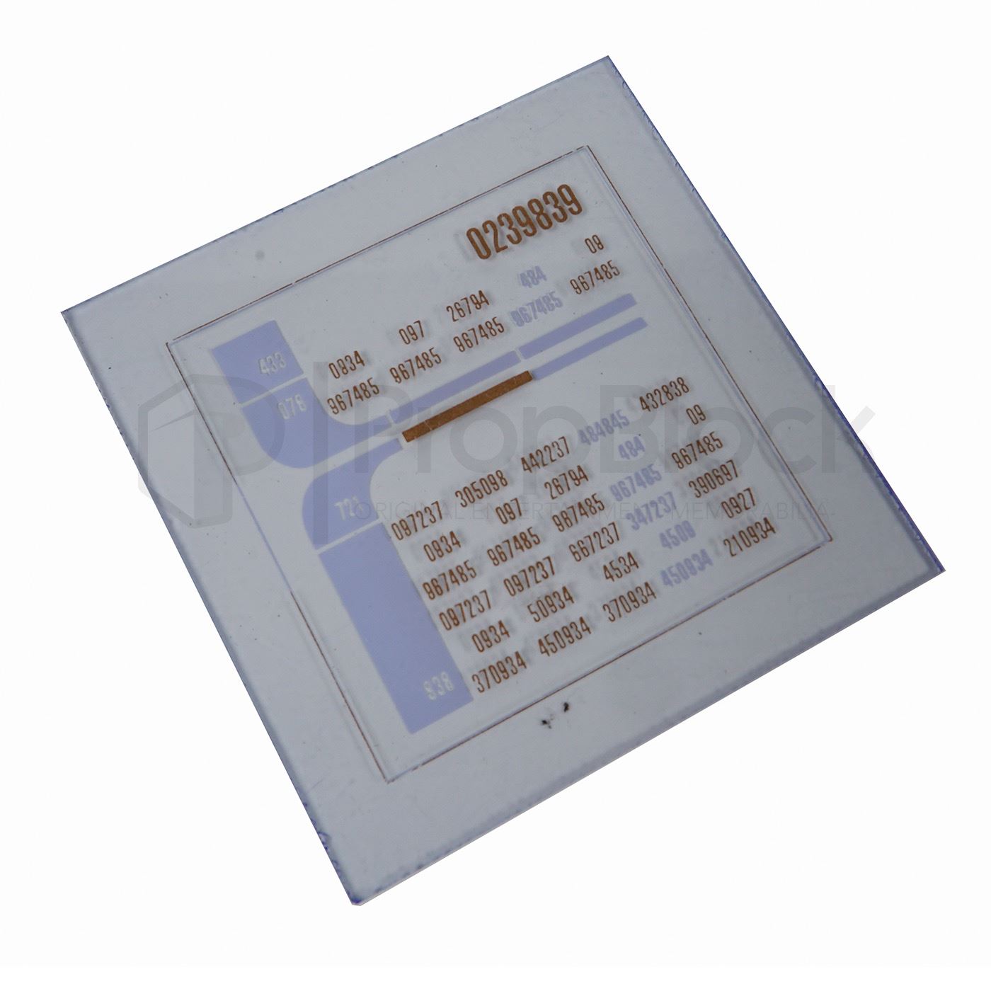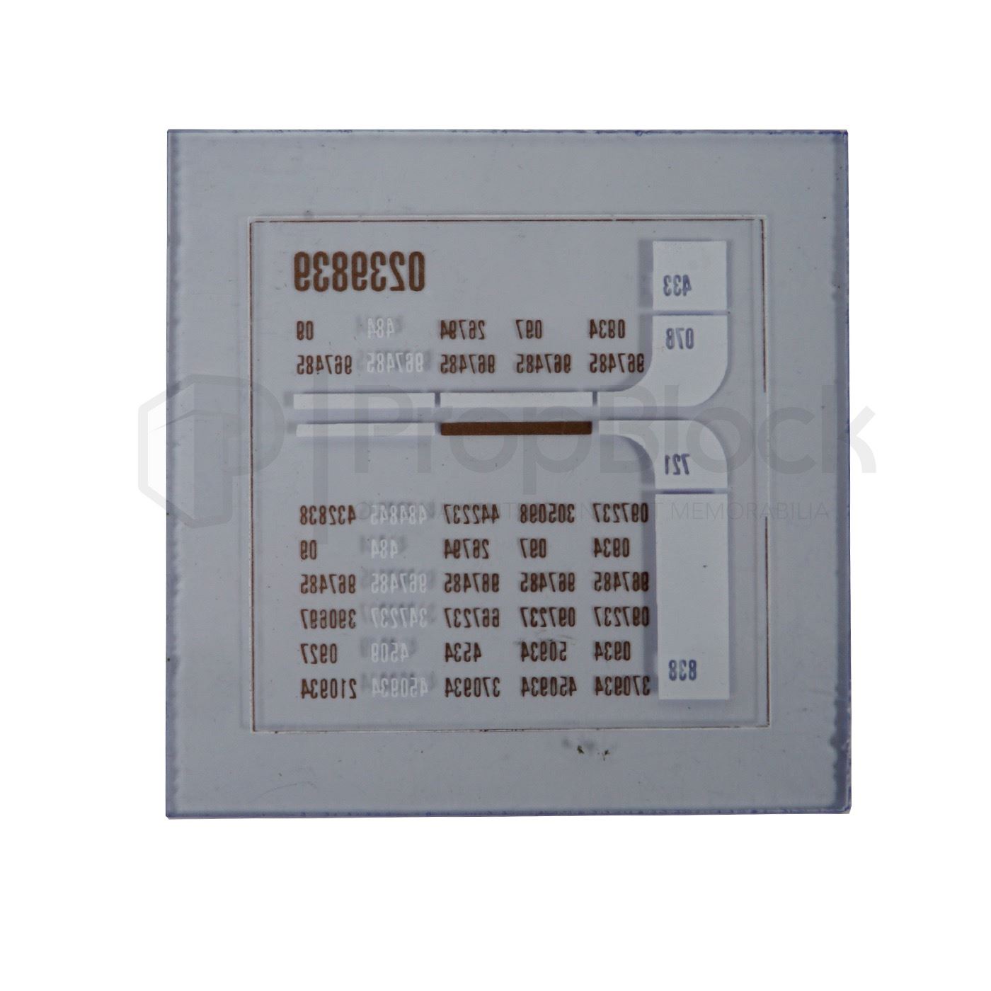 Blue isolinear chip used in the production TNG cast's first feature film Star Trek: Generations. In the 23rd century, the Starship Enterprise is dispatched to the scene of a giant energy field about to engulf two ships. Capt. Kirk (William Shatner) averts calamity, but is exposed to the field and presumed dead. Years later, the Enterprise's new commander, Capt. Picard (Patrick Stewart), learns that one of the disaster's survivors, Dr. Soran (Malcolm McDowell), plans to enter the field by destroying a neighboring star. Picard now must collaborate with an unlikely ally in order to stop him. This is small blue square ISO chip made of tinted acrylic with silkscreened detailing printed on the front and back. This item shows very minor wear from use in the film and remains in excellent condition.