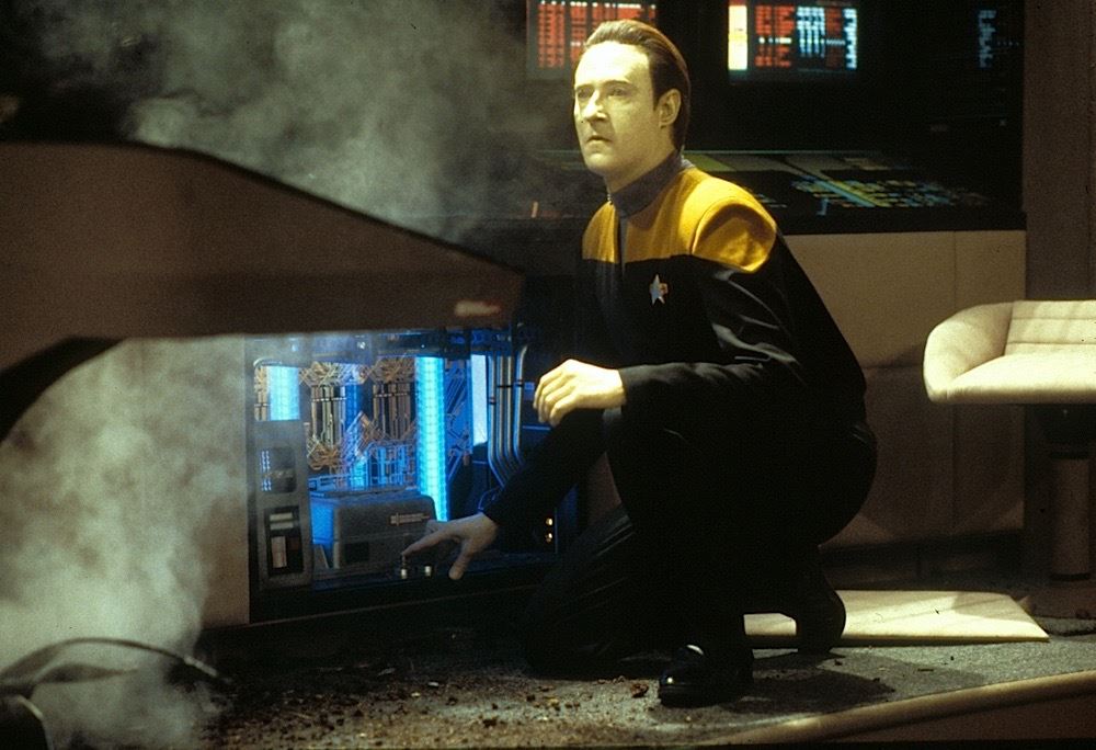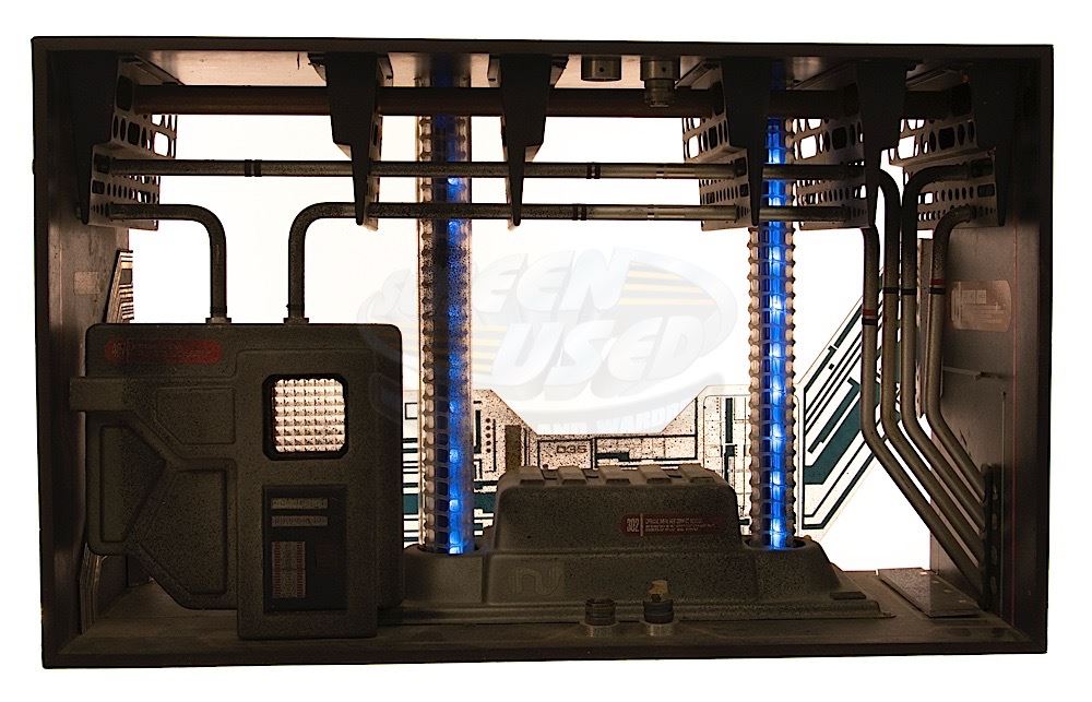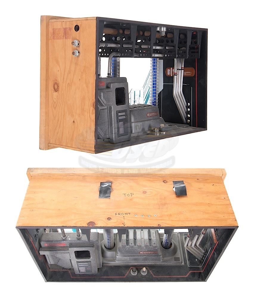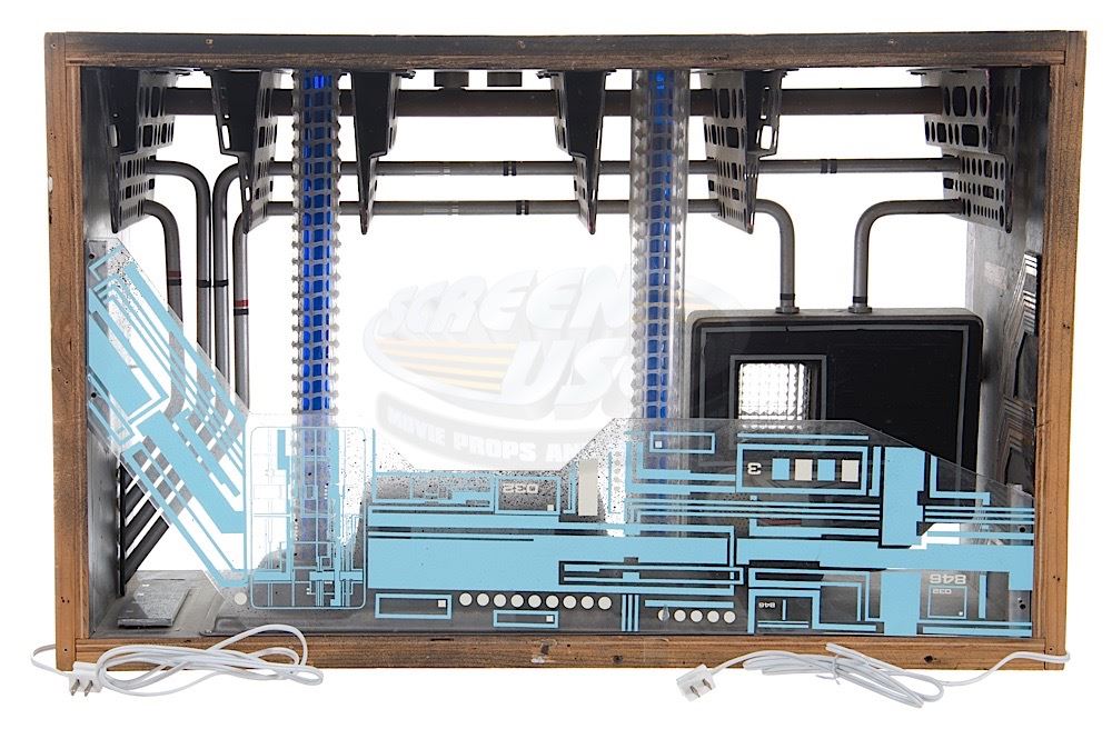 (Paramount Pictures, 1994) This prop busy box was custom-made by the production for use by Brent Spiner as "Data". The busy box is part of the Enterprise bridge that Data accesses to reset the Klingon cloaking device and allow photon torpedoes from the Enterprise to blow up the Klingon ship attacking the Enterprise. Wear from use and storage is present and some of the plexi on the back was removed and used on other sets during filming. This prop is constructed of a plywood frame with plastic and metal components added for detail and was lit by fluorescent bulbs during filming, which were cut when it was removed from the set. The prop has been relit with an LED strand that plugs in to a standard 110V outlet. The box was also lightly spray painted black for the last scene in the film where the bridge has crashed and burned, so the black is to represent scorching from the fires. The prop measures 37.5" x 23.5" x 13".