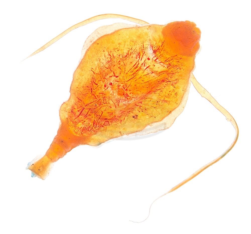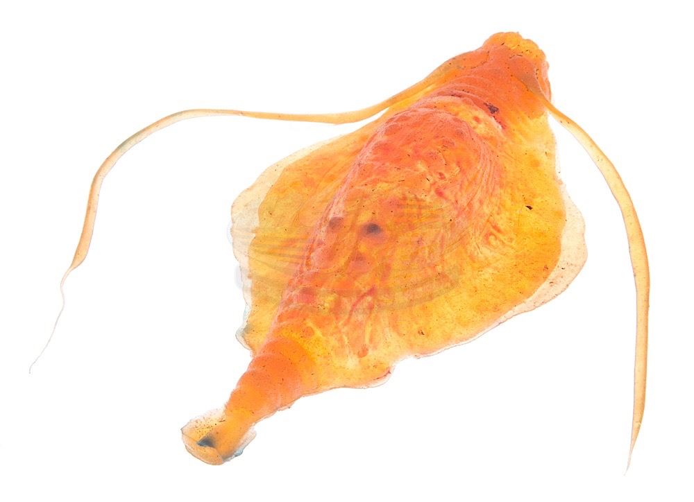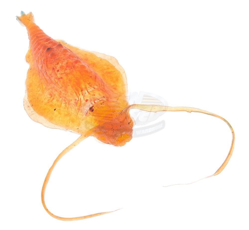 (Paramount, 1984) This prop microorganism was custom-made by the production for use as set dressing. Made of cast latex, this creature is opaque orange with additional paint for detail. Latex antennae have also been attached. Measures 5" x 15.25" with antennae extended.