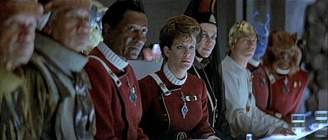Star Trek IV Delegate Pin - Perhaps the ultimate in Star Trek features is "Star Trek IV: The Voyage Home" (1986), in which writer's Leonard Nimoy, Harve Bennett and Nicholas Meyer foresee the horrors of Global Warming. And so does the 23rd century crew of the Enterprise, who travel back in time to 1986 to save the planet Earth (and the whales!). Depending a great deal on humor, what with having futuristic strangers in a very strange land (not only in the past, but in San Francisco!), it is also the funniest of the Star Trek adventures, and contains one of the great lines ever when Capt. Kirk (William Shatner) lands his craft in the park, and as the crew come down the gangplank shouts out: "Don't forget where we parked!" This is a screen worn delegate pin which was custom made for filming and was worn by one of the many delegates in the film, one of which was producer-writer Harve Bennett's wife Carol, a die-hard Trekkies, who fulfilled a literal life-long dream of actually being in a "Star Trek"! The metal two-piece pin features the United Federation of Planets logo on the upper portion with a lower hanging charm of the galaxies. A magnificent piece of Star Trek memorabilia from the most beloved in the series of films! Comes with a Certificate of Authenticity from Screen Used. Metal pin is approx 5"long.