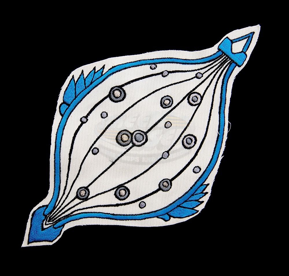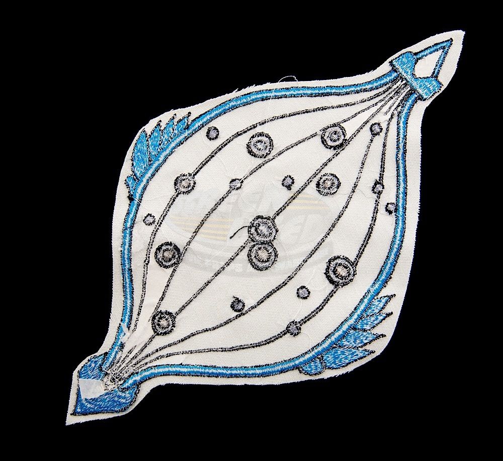 (Paramount, 1979) A shoulder patch featuring the logo of the United Federation of Planets as appearing on usher uniforms from the Federation Council in Star Trek IV: The Voyage Home. The item is embroidered on white fabric and believed to represent planets in the stream of warp speed, colored silver and gray, with a blue border. Measures approximately 7" X 4". Along with our ScreenUsed COA, this item comes with a Filmwelt Collection COA.