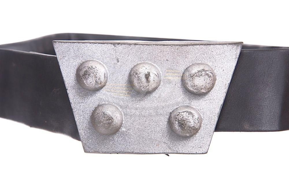 This black vinyl belt and buckle were custom-made by the production for use by various actors as "Klingons" in Star Trek episodic television or feature films. The belt measures approximately 36.5 inches and features a buckle that is made of resin, painted metallic black, with molded in wire loops on the reverse for wear at any point on the length of a belt. Minor wear from use is present. Along with our ScreenUsed COA, this item comes with a Filmwelt Collection COA.