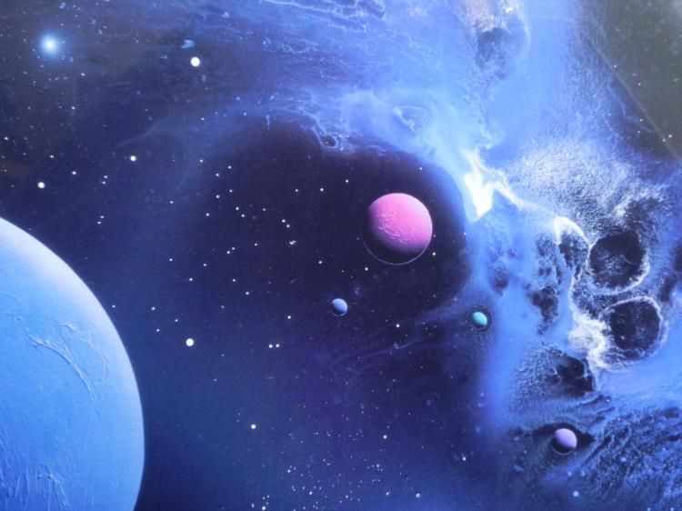 This nebulous scene is a serene and peaceful one, full of depth and wonder. Artist: Michael David Ward Signature: By the artist in gold paint pen, lower left Title: Earth Shroud Medium Chromagraph print on paper Edition: 69/450 Year published: 1993 Image size: 19 1/2 x 29 1/2 inches Framing: Double matted in dark and silver, in brushed silver metal frame Condition: Excellent Certificate of Authenticity: From StarStruck Corporation