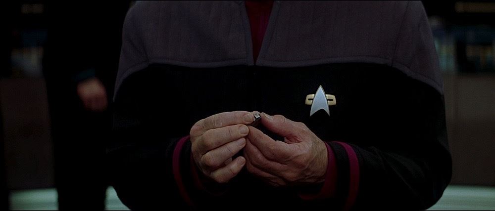 (Paramount Pictures, 2002) This prop transporter device was custom-made by the production for use by Patrick Stewart as "Jean-Luc Picard". This prop is the static nonworking version used when the hero light-up version was not needed. The prop was used by Data to get Picard off Shinzon's ship before it explodes. Measures 1" x 1" x .5".