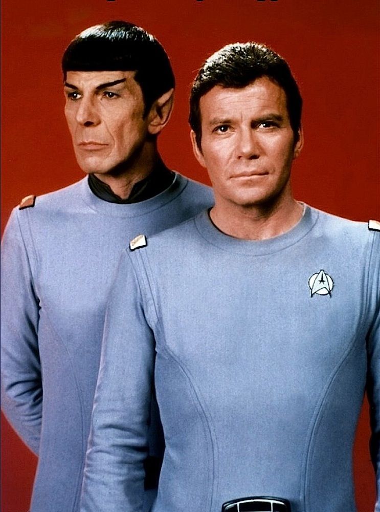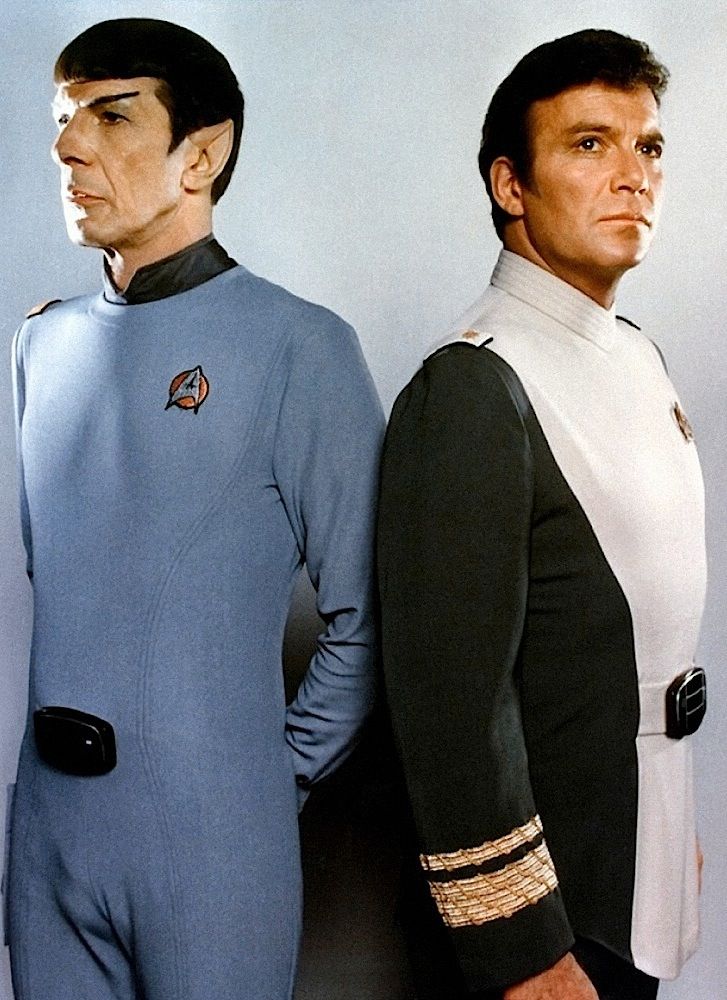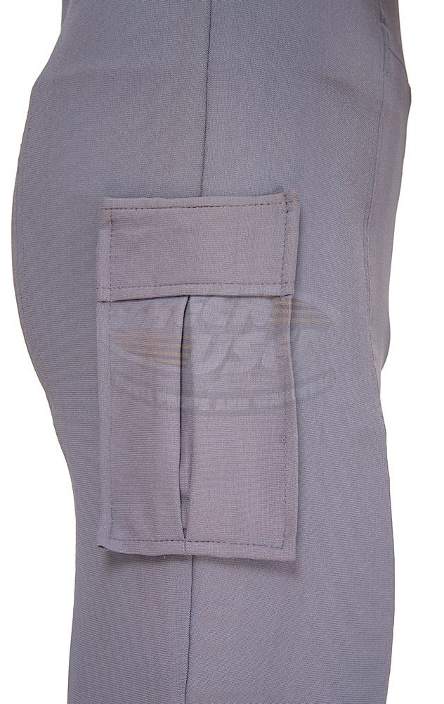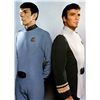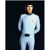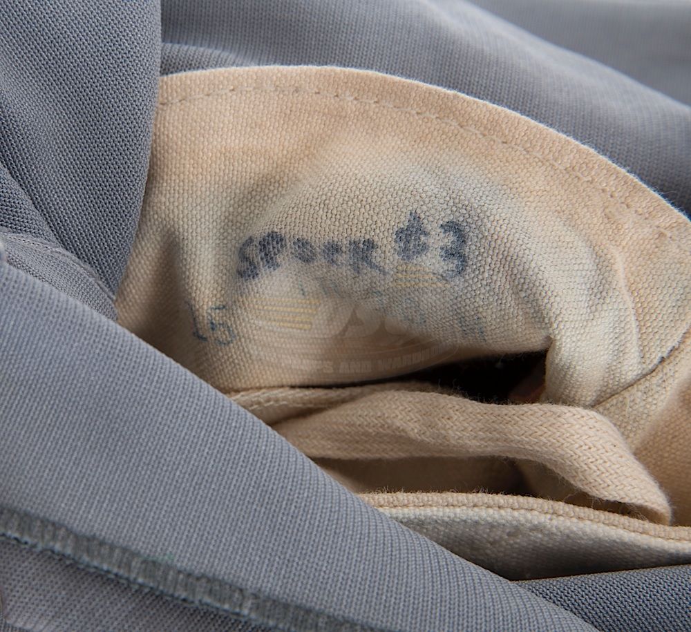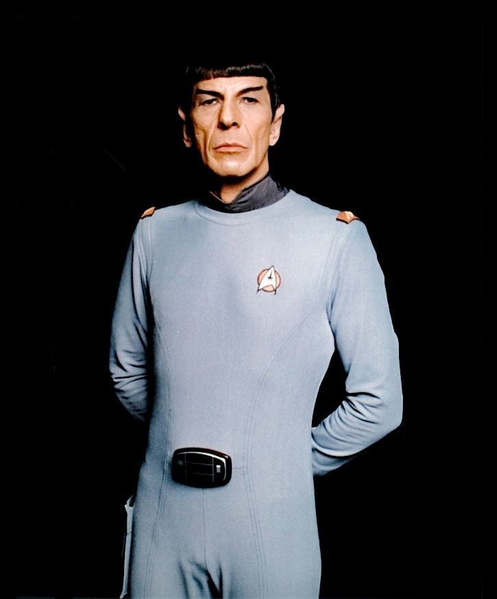 (Paramount, 1979) This Class "D" Starfleet Uniform was custom-made by Western Costume Company for use by Leonard Nimoy as "Spock". The uniform consists of a gray jumpsuit with a pocket on the right leg, a dark gray sleeveless under shirt, a pair of cloth covered shoes and an unattached bio-monitor. Western Costume Company tags with "Leonard Nimoy" typed on the information line are sewn into the jumpsuit and under shirt. The shoes are stained and each have "Spock" written on the inside. In addition to being used during filming, Leonard Nimoy is seen wearing this style uniform in many publicity photos for the film.