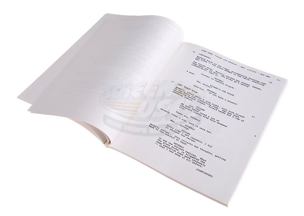 (Paramount television, 1987-1994) This 63 page production script is titled "Cause and Effect" and dated January 2, 1992. The script has been autographed on the cover by writer Brannon Braga.