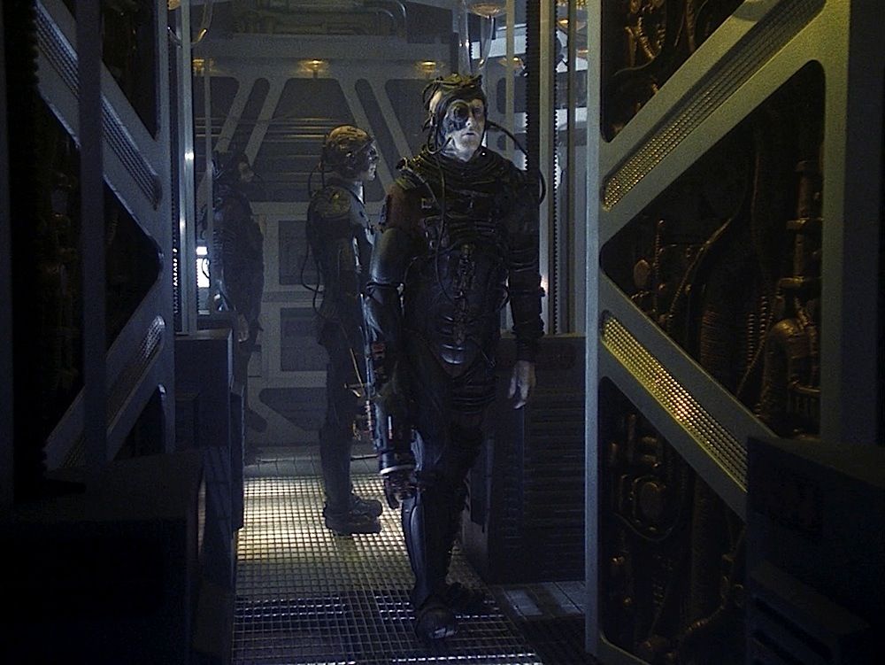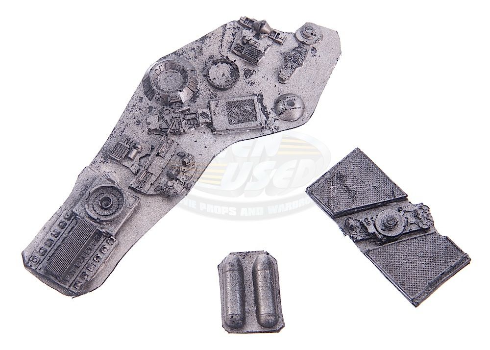 (Paramount-TV, 1987-94) This set of three Borg costume appliances were custom-made by the production for use on the various Borg costumes. The pieces are made of molded rubber, detailed to look like metal components and range in size from 7" x 3" to 1.5" x 1". Along with our ScreenUsed COA, this item comes with a Filmwelt Collection COA.