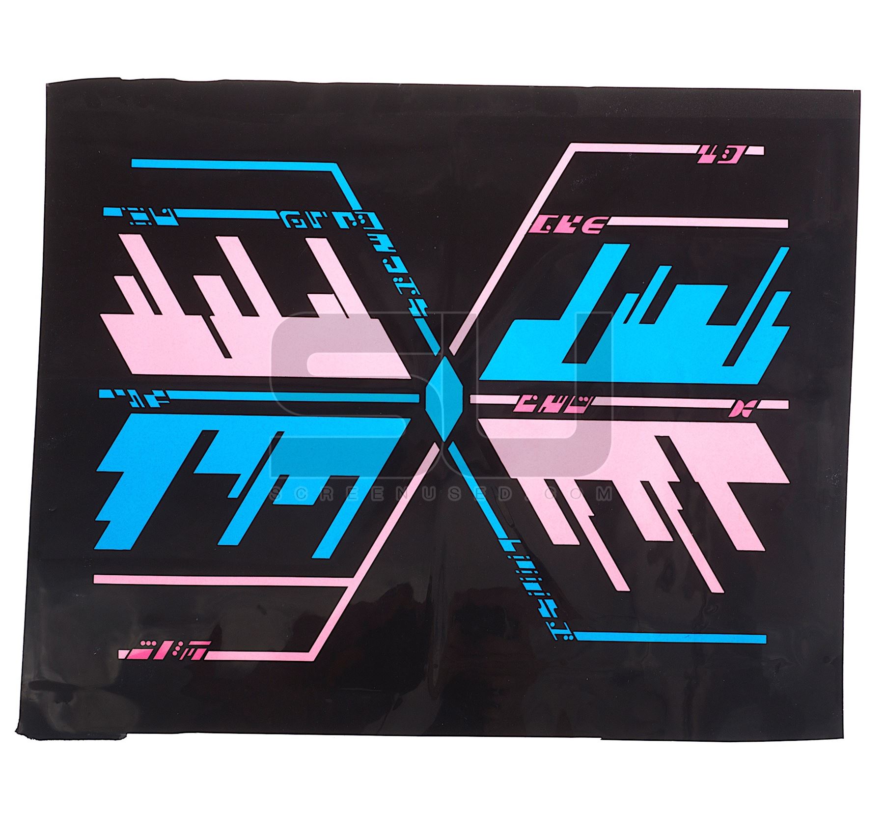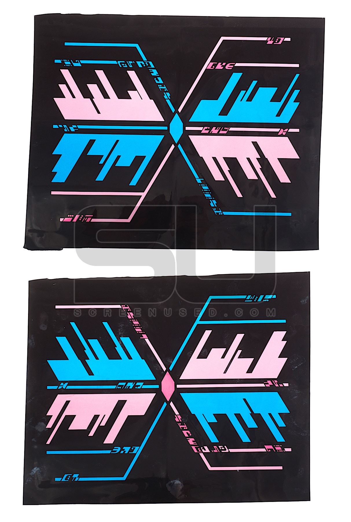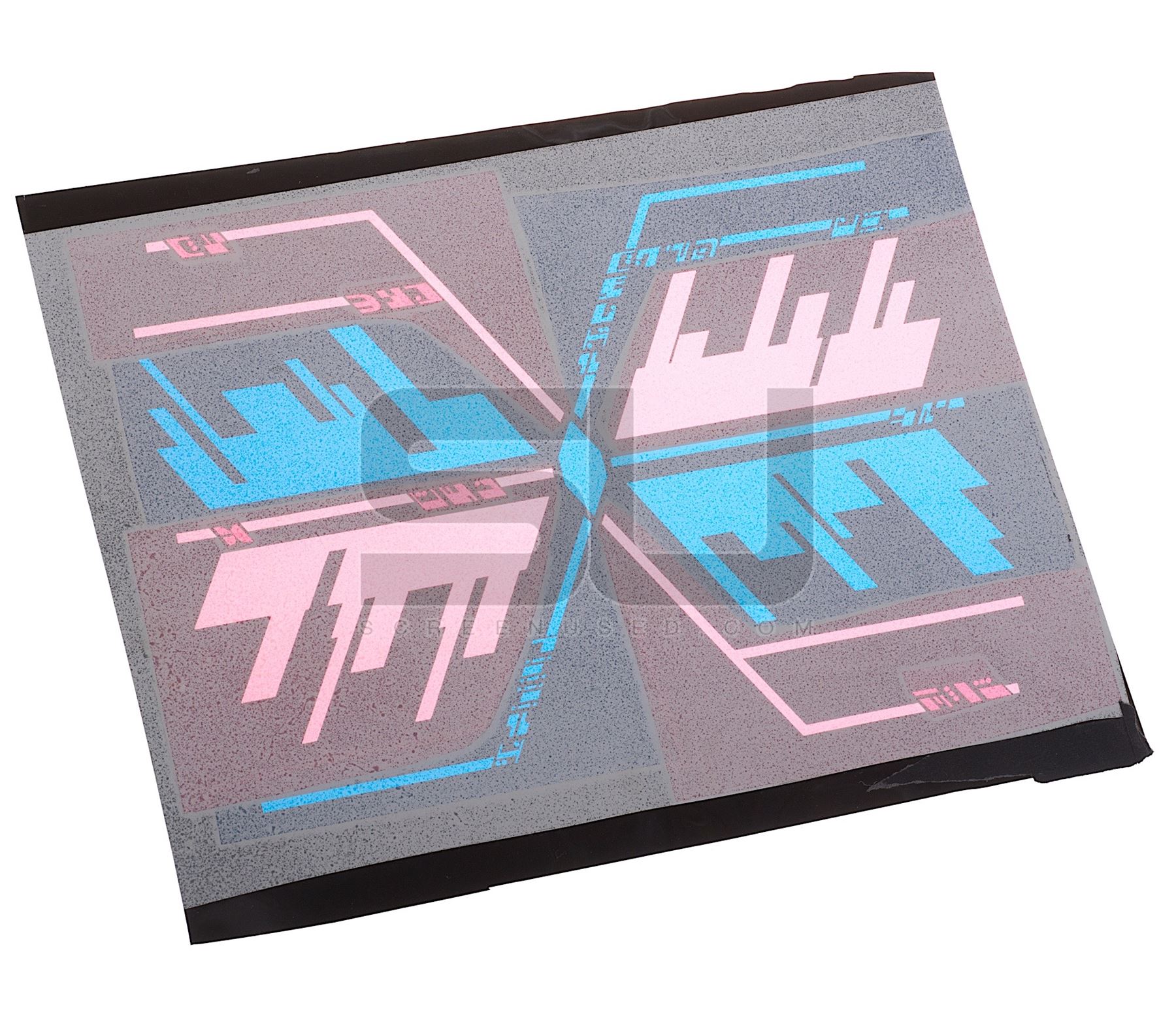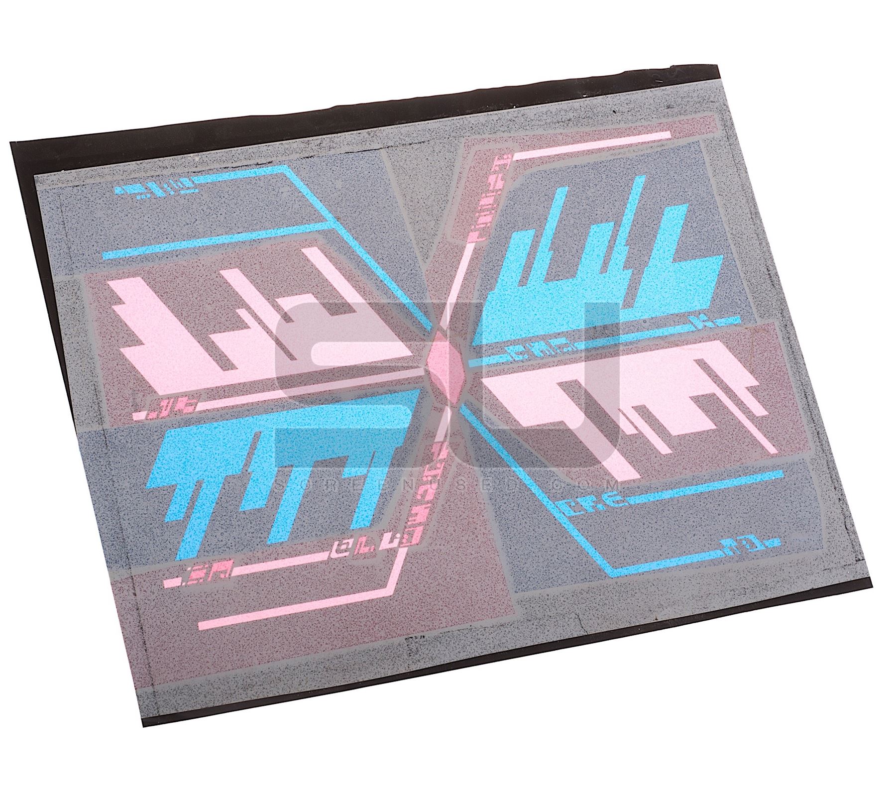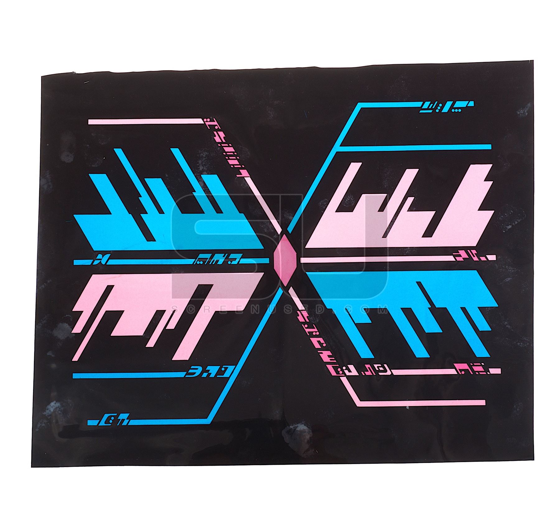 This set of two prop Ferengi back-lit ship display panels were custom-made by the production for use as set dressing in the episode titled "Bloodlines". Each panel is made of thin plastic with applied graphics that illuminate when lit from behind, and have been removed from the original plexiglas. The panels each measure 18" x 15".