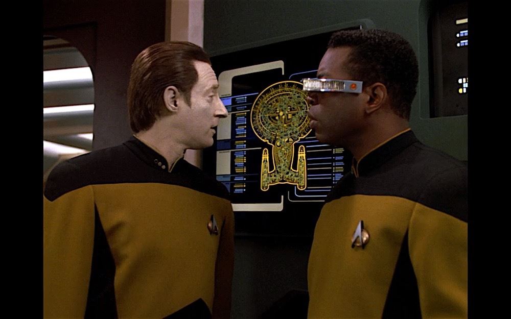 (Paramount-TV, 1987-94) This back lit panel was custom-made by the production for use as set dressing in Engineering during filming of the season seven episode titled "Emergence". The plastic panel features the image of the Starship Enterprise and detailing the locations of strange modifications to the ship's circuitry. Two types of this panel were created for use, showing two different stages of the circuitry infection, this panel is the second more advanced version and is inspected by Data, Geordi and Riker. This is a very iconic set piece as it features the Starship Enterprise. Minor wear from use and storage is present, measures 24.75" x 24.75".