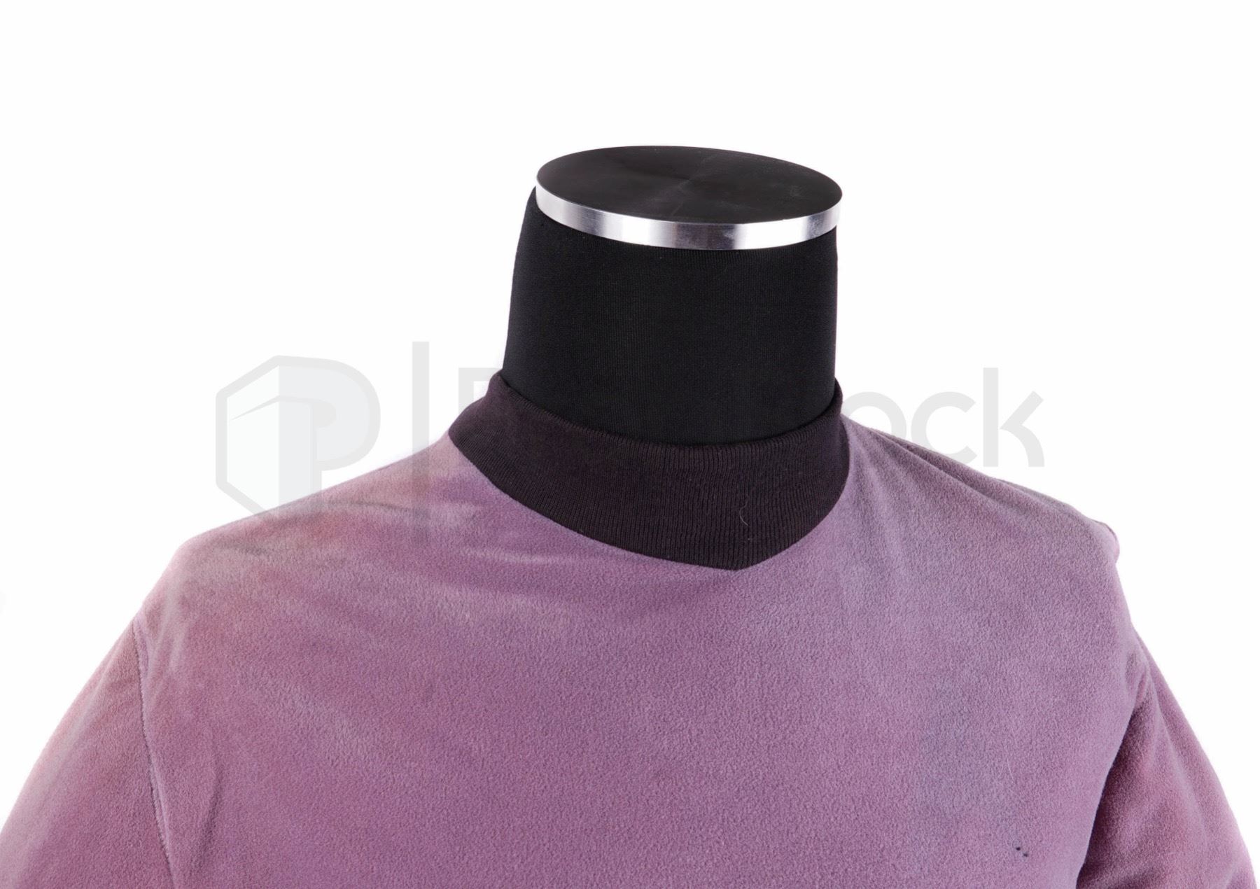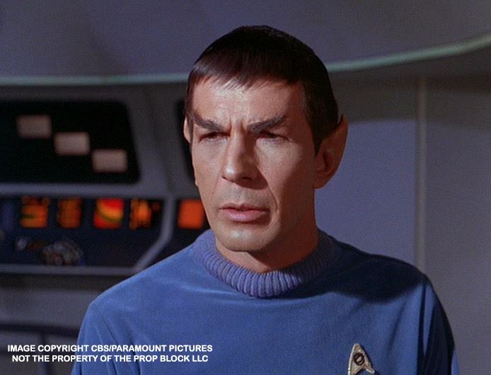 An Original Series Science Officer tunic that was worn in the first episode of Star Trek ever produced - "The Cage" - filmed in 1964. The tunics featured in the first pilot episode varied in design slightly from what was later seen when the series was picked up, as each arm features an approx. 1.5" slit designed into the rear cuff - standing out as a unique construction detail. The main tunic is a heavy blue velour (which has since turned a light lavender over the decades, not uncommon for this material). The costume shows slight fading around the sleeves where there is evidence of an imprint from previously attached straight braid, as well as on the breast area where the faint outline of the previously sewn on small pilot style Starfleet patch is visible. This piece features a black collar section which was sewn onto the garment for later use in the regular season episodes, but when it was worn in "The Cage" it featured a collar of the same color as the main velour fabric. The very fragile original thread has come apart along some seam lines on the torso and arms in some places, which can be very easily restored/resewn, or left as is. An exceptionally rare costume from Star Trek's first pilot, this piece is likely one of only two Cage Science Officer tunics ever to be offered for sale, and, as the history of this particular item is well known and documented in collecting circles, there is much compelling evidence to support that this tunic was worn by Leonard Nimoy for his very first appearance as the iconic character of Mr. Spock. In addition to the evidence of previously attached straight rank braid; its overall physical size (and body style design); as well as interior left shoulder construction details and past auction history evidence which documents a former zipper closure running along its left shoulder; a still present neck collar cinch string and other design details firmly establish this as a Spock Cage tunic. A more extensive analysis of this garment, including additional information and screenshot comparisons can be found at: http://www.startrekpropauthority.com/2011/12/star-trek-original-series-blue-science.html This is truly an iconic and exceptionally rare piece of Star Trek production history.