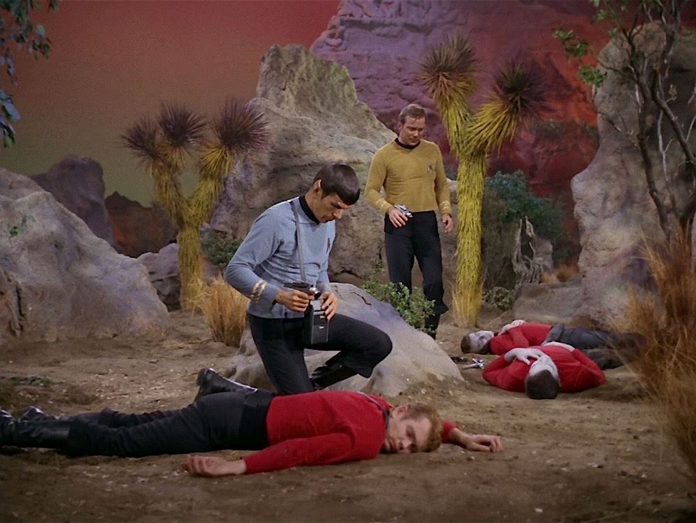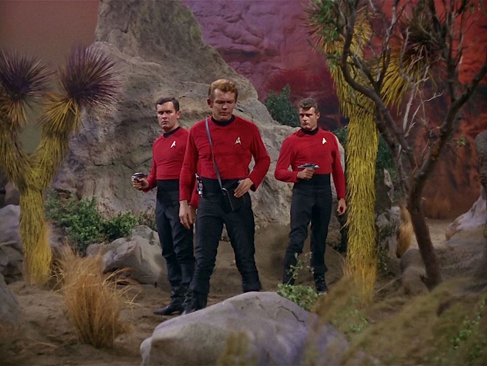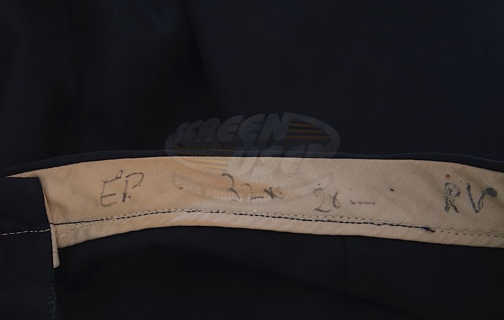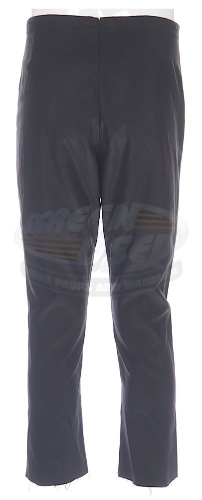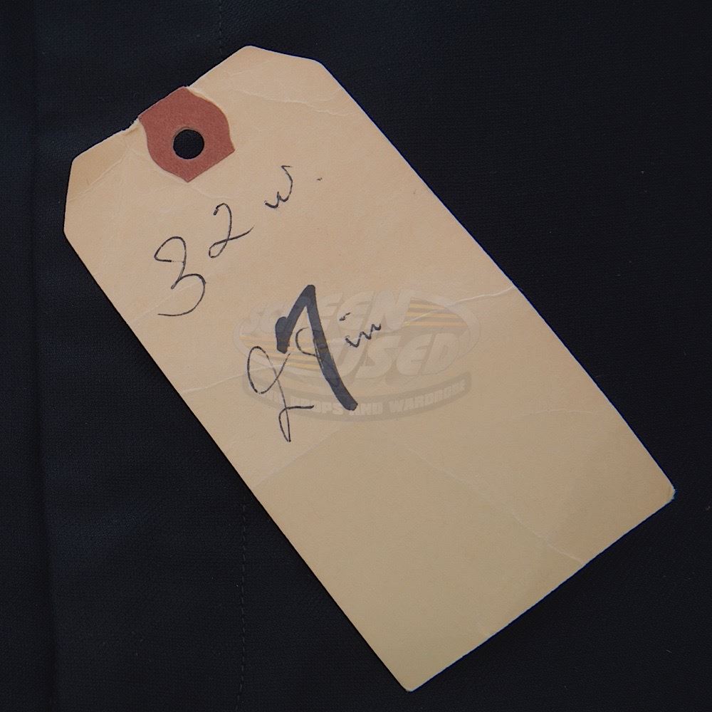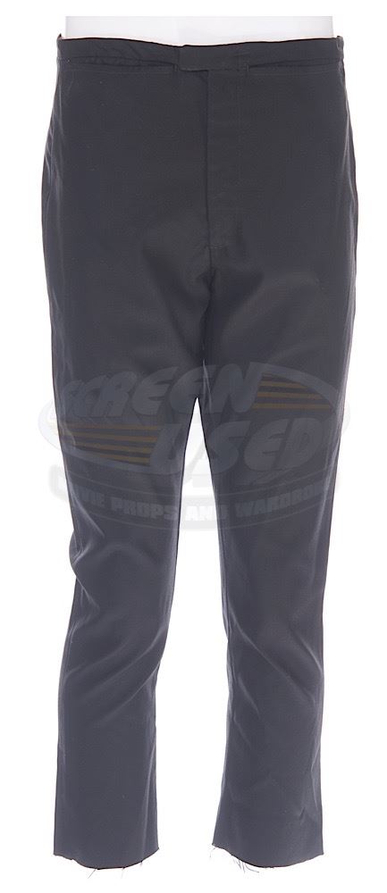 (Desilu Productions, 1966-69) A pair of men's Original Series-style black uniform pants custom-made for use by Eddie Paskey as various Enterprise crewmen and most notable "Mr. Leslie". "E.P." is written inside the pants and a vintage costume tag notes the size of the pants on one side and has "Ed Paskey" written on the reverse side. These classic style pants are seen throughout the run of the series and have become a very rare find in the marketplace. Wear from use is present.