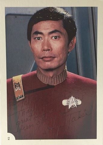 Star Trek: The Wrath of Kahn (1982) Sulu (George Takei) hand signed card at Shore Leave. (5"x7")