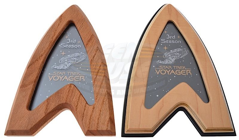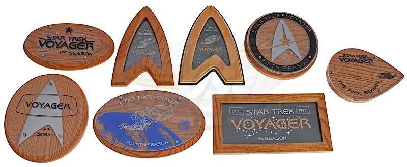 (Paramount Television, 1995-2001) This is a collection of eight wall plaques that were only given to the show's crew members. The collection includes all seven season plaques including an extra season three plaque that is a bit different in style to its counterpart. The plaques are made of wood and plastic with custom graphics and range in size from 9" x 7" to 12.5" x 6.5".