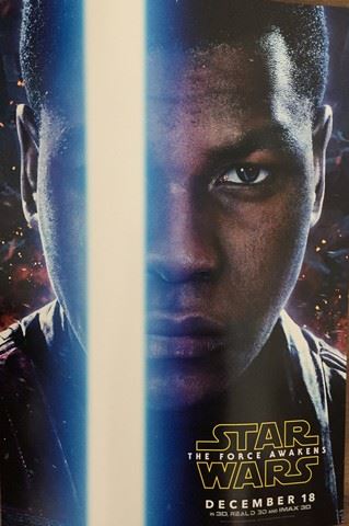 Star Wars 7: The Force Awakens double sided, rolled mini poster with Kylo Ren (Daisy Ridley) and Finn (John Boyega) on the other (13"x19"). Good condition.