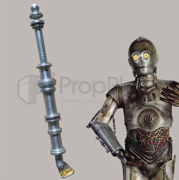 Arm pistol used by C3P0 in the Film Star Wars: Episode Two Attack of the Clones. This piece was used on the costume during filming and attached the characters forearm to the upper arm. This piece shows wear from use on set and has adhesive on the bottom section but remains in excellent, production used condition.