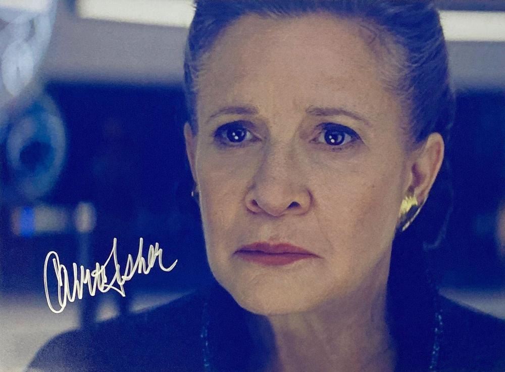 Star Wars Carrie Fisher facsimile signed movie photo. 8x10 inches. This item is a reprint of an original autograph