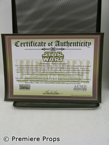 Premiere Props nor the consignor makes any warranties, expressed or implied, as to merchantability or fitness for a particular purpose, the correctness of the catalogue or other description of the physical condition, size, quality, rarity, importance, medium, provenance, exhibitions, literature, historical relevance of any property, intended use, condition of the property (including any condition report), correctness of description, origin, measurement, quality, rarity, importance, exhibition, relevance, attribution, source, provenance, date, authorship, condition, culture, genuineness, value, or period of the property. Additionally, neither Premiere Props nor the consigner makes any representation or warranty, expressed or implied, as to whether the Bidder acquires any copyrights, including but not limited to any reproduction rights of any property, or other intellectual property (including exhibition or reproduction rights) or whether the property is subject to any limitations such as ‘droit morale’ (moral rights) or other rights affecting works of art. Premiere Props does not make any representation or warranty as to title.