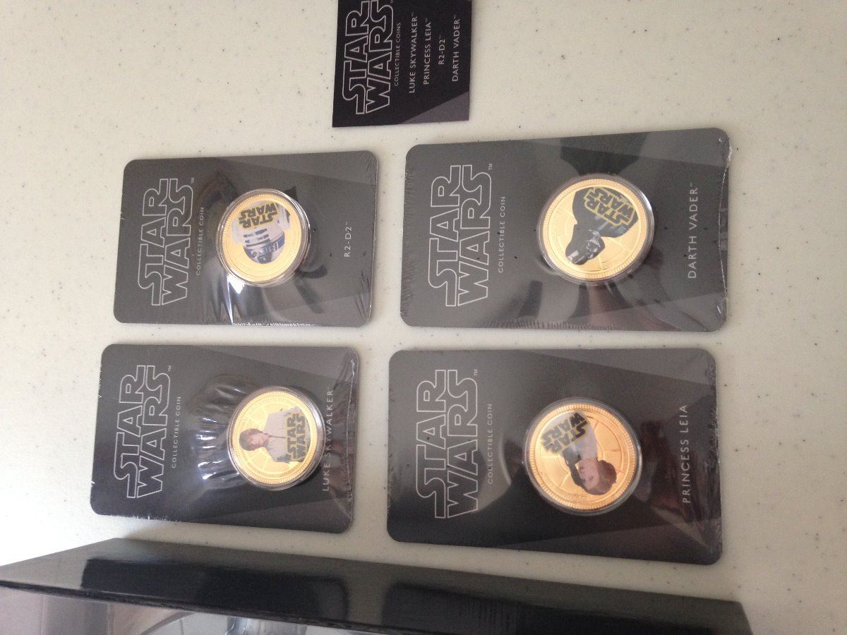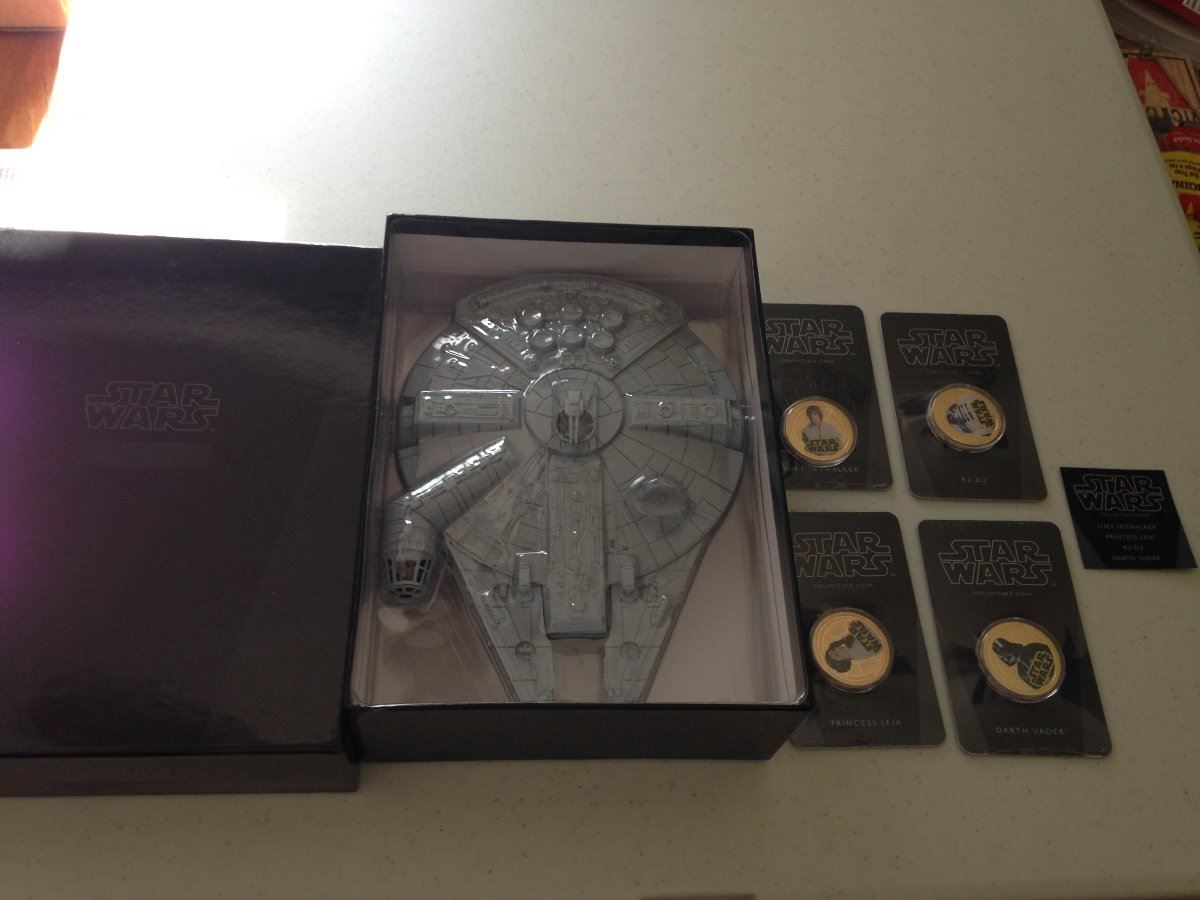 Star Wars Falcon 4pc Gold Plated Coins with Display - Sold Out - Never have been opened