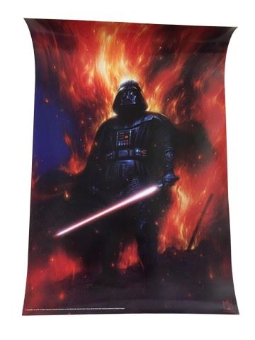 Star Wars (Lucasfilm Ltd.) One Sheet. Exclusive artwork of Darth Vader created by Tsuneo Sanda. (Edgerly Design). Very Fine. There are minor creases and edge wear damage. (27" x 41"). This Star Wars poster comes directly from Carrie Fisher's personal collection and is also part of the Debbie Reynolds archive collection. This amazing memorabilia comes direct from the Debbie Reynold's archive collection.