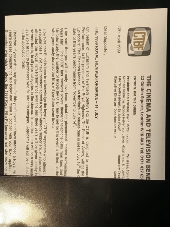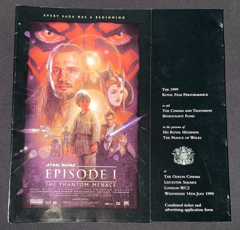 Star Wars: Episode I - The Phantom Menace (1999) - UK Benevolent Fund Royal Film Performance Application Folder.