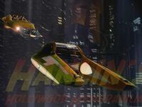 Original "Koro-2 All-Environment Exo-Drive Airspeeder" maquette driven in the movie by "Zam Wesell", played by Leeanna Walsman from the production of the sci-fi film 'Star Wars: Episode II - Attack of the Clones' (2002) written and directed by George Lucas.