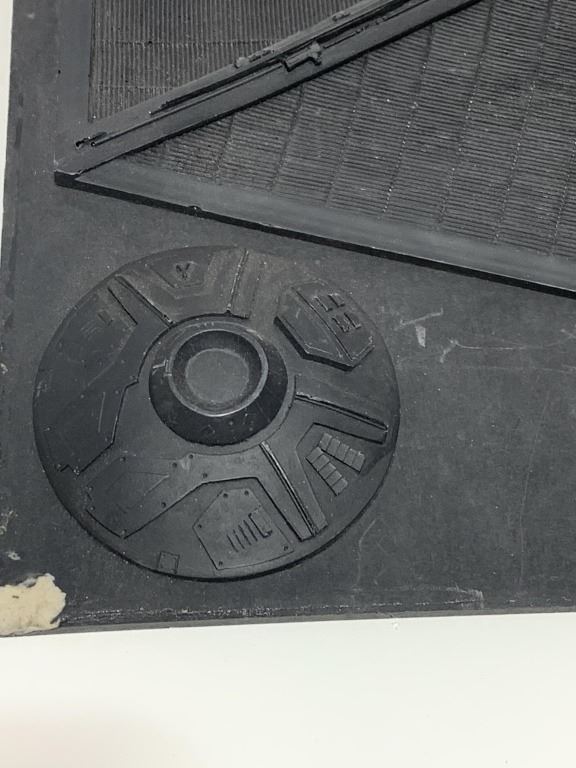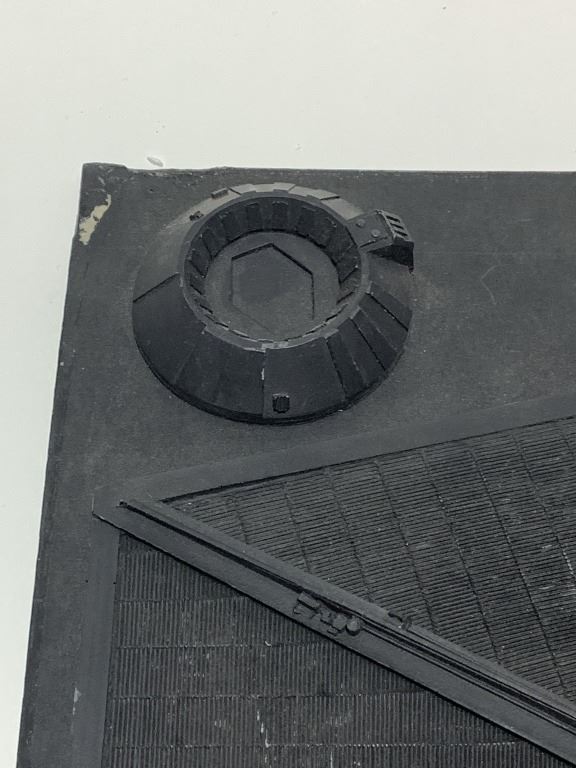 Consists of model pieces glued onto a piece of black plexiglass which makes the mold master to make more models. According to Patrick McClung, the two-time Oscar nominated visual effects artist who looked at this piece, this would've been used for the exploding Tie-Fighter models.