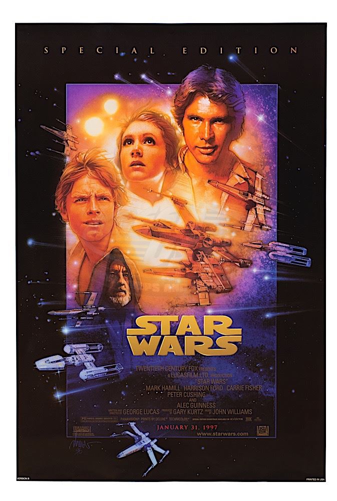 (LucasFilm, 1977) Original 1997 special edition release one-sheet (26.75" x 39.75") poster. Rolled in fine condition. Artwork by Drew Struzan.