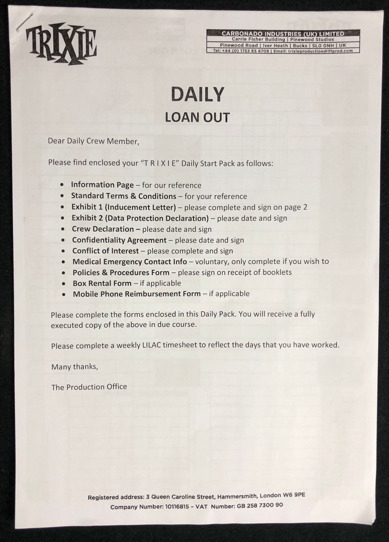 Star Wars: Episode IX (2019) - Trixie Daily Start Pack Blank Contract.