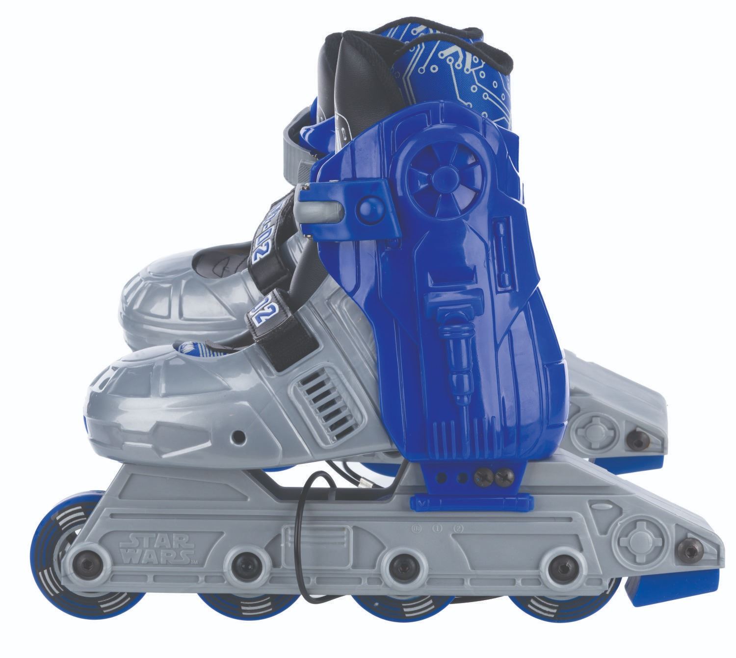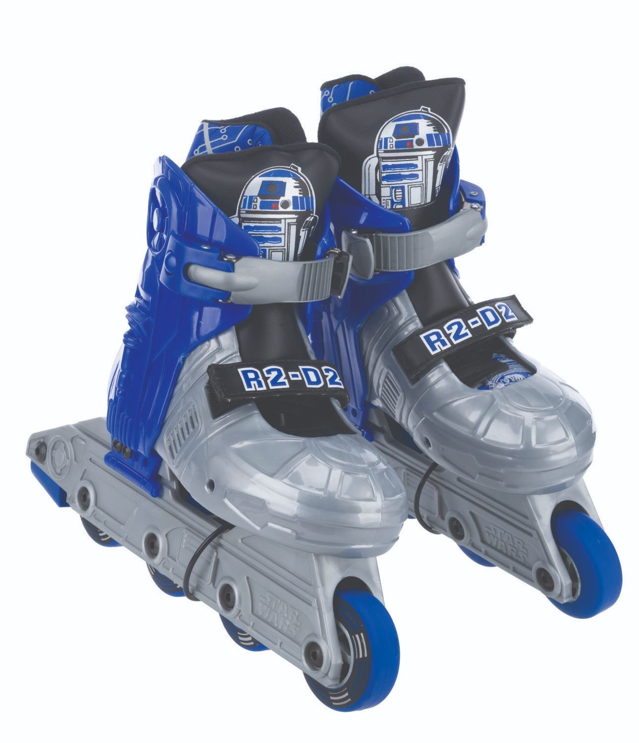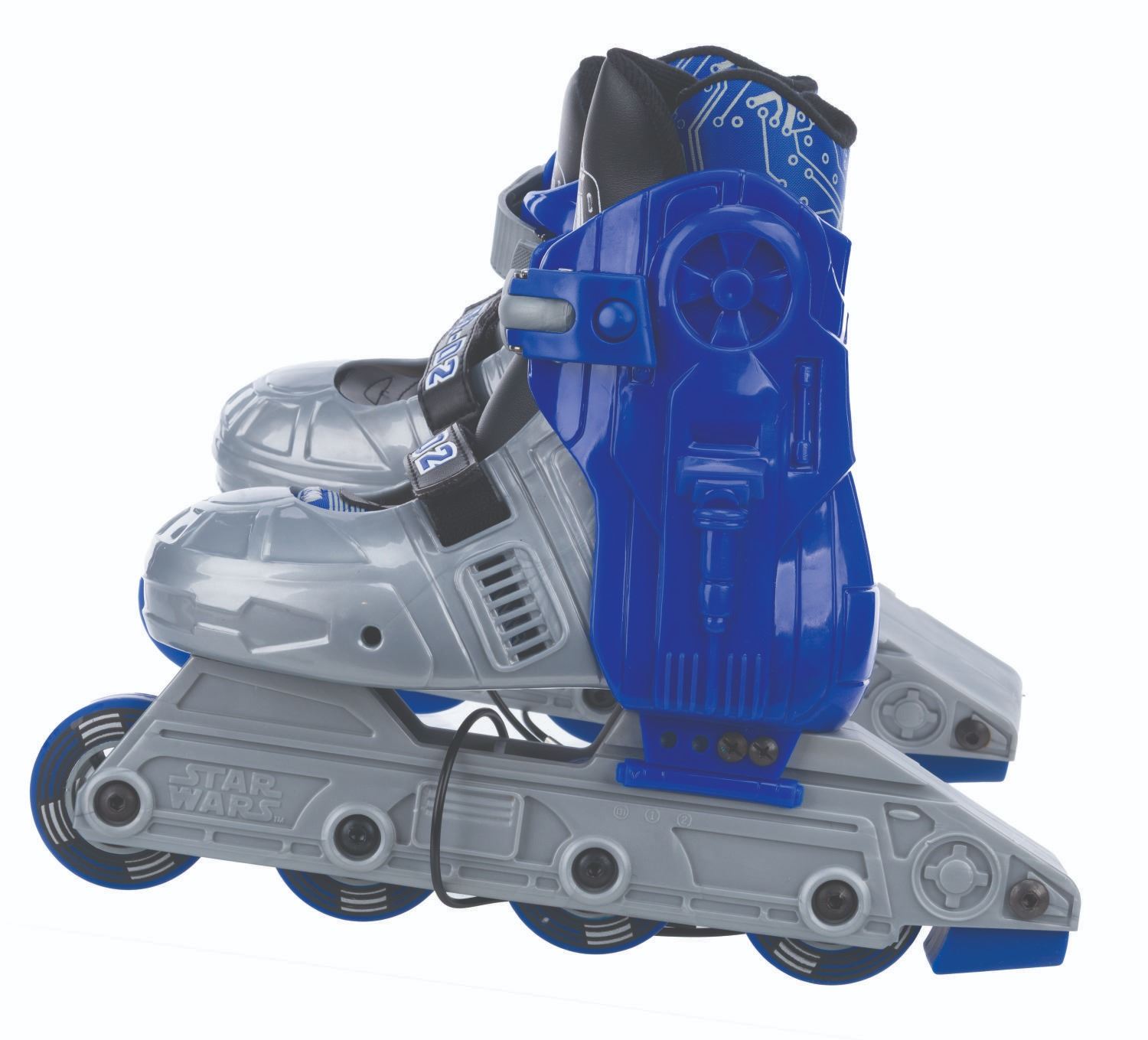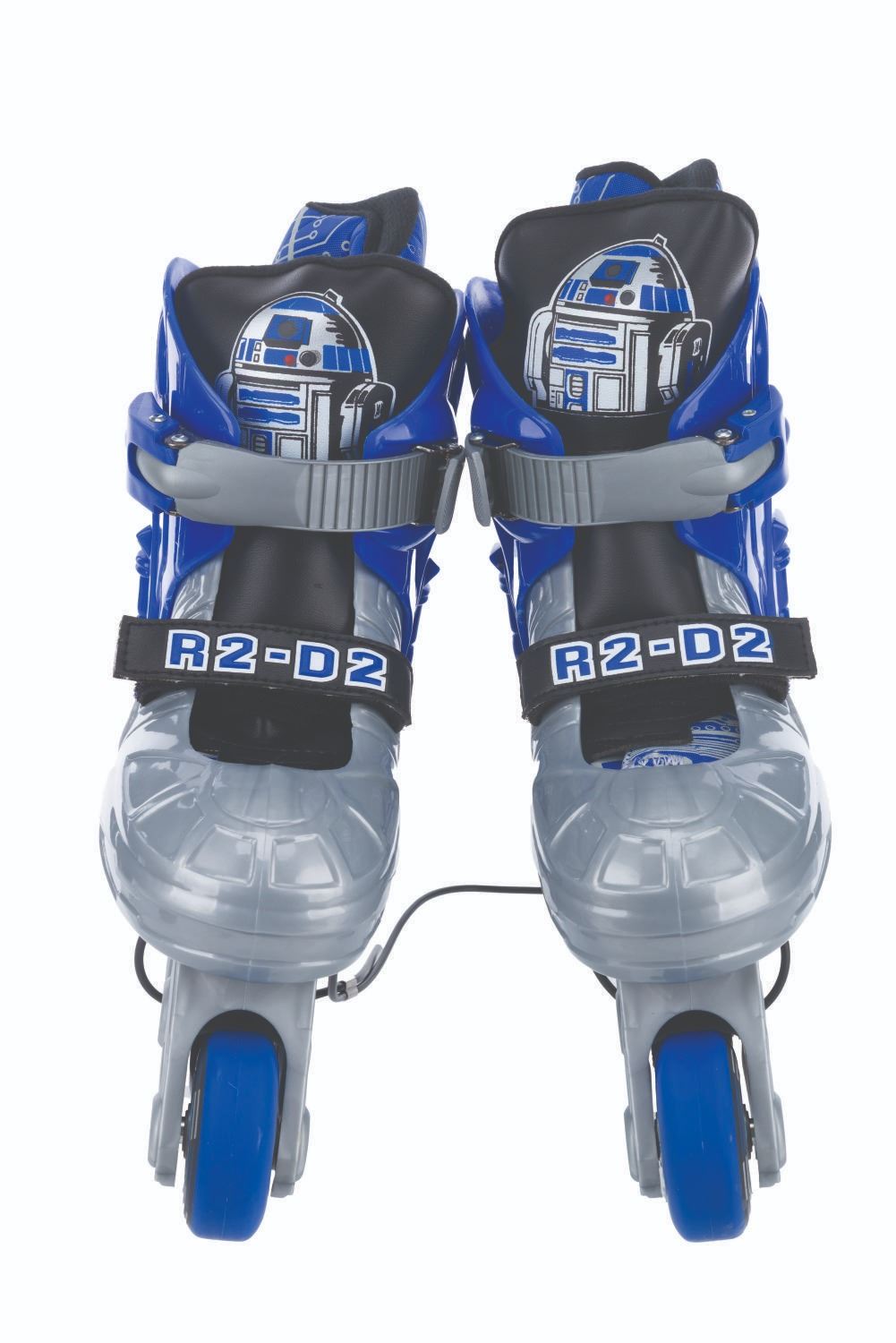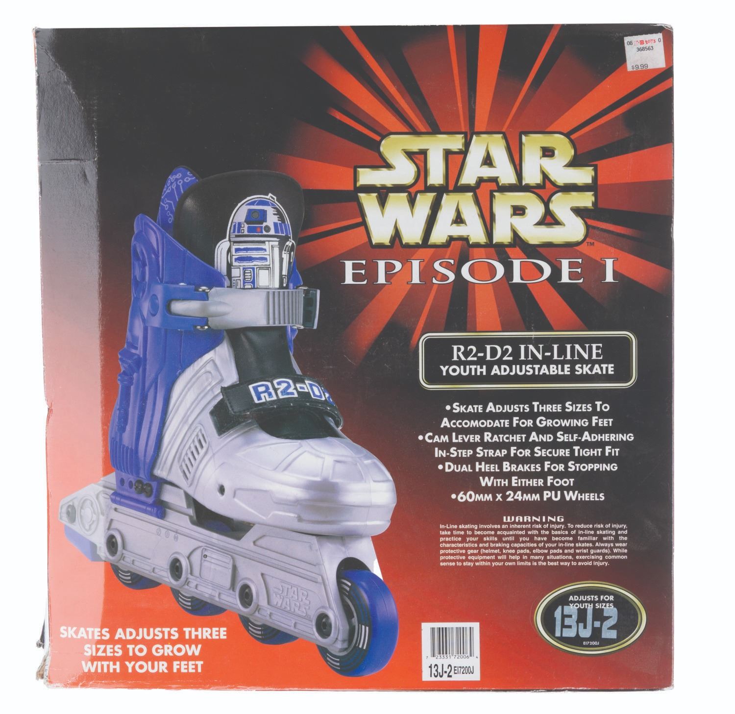 (Seneca Sports, 1999) A pair of R2-D2-themed inline roller skates. Labeled size “Youth 13 J-2”, the skates are in fine unused condition. The 15” x 15.75” x 4.25” box displays in good condition with typical wear and one edge of the lid split.