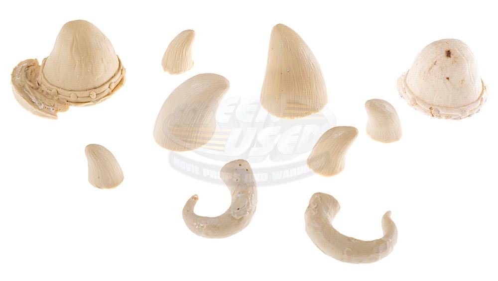 (LucasFilm, 1983) A collection of ten original unfinished teeth and horn castings made during the production of the film. The castings are made of resin and feature textured details and remain unpainted. The pieces range in size from 1" in length to 2.25" in length.